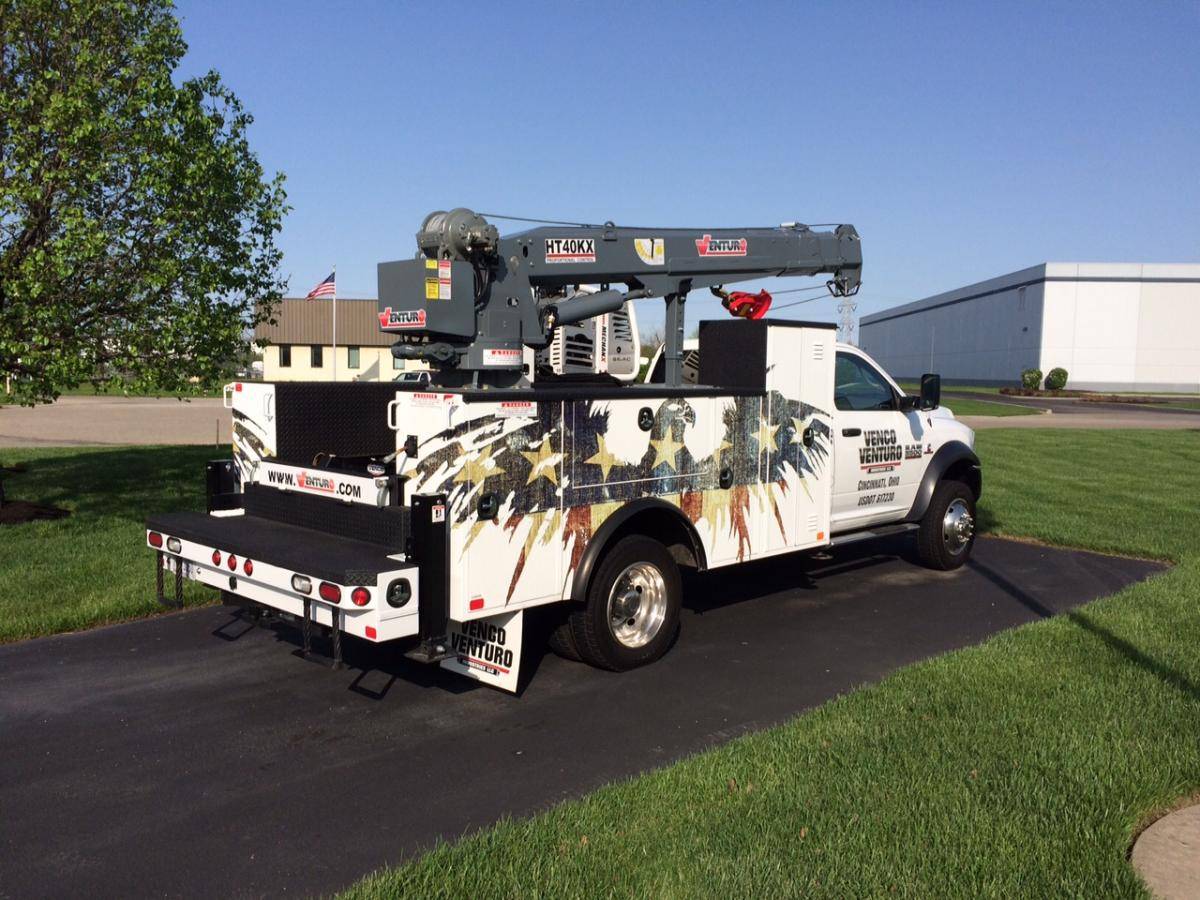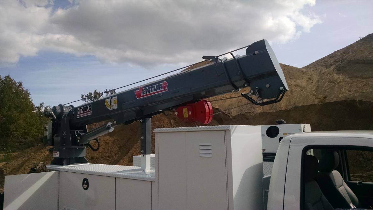The Venturo HT40KX-25 is fully hydraulic, and features 25' full-hydraulic extension boom with capacity-overload shut-off system, anti-two-blocking system, remote control pendant with 25 ft. cord and load block with swivel hook safety latch. This crane is only available with Proportional control.