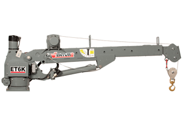 The all-new Venturo ET6K service crane is a 6,000 ft.-lbs. crane with 2,000 lb. lifting capacity. Features an electric winch, rotation and hydraulic elevation with manual extension.