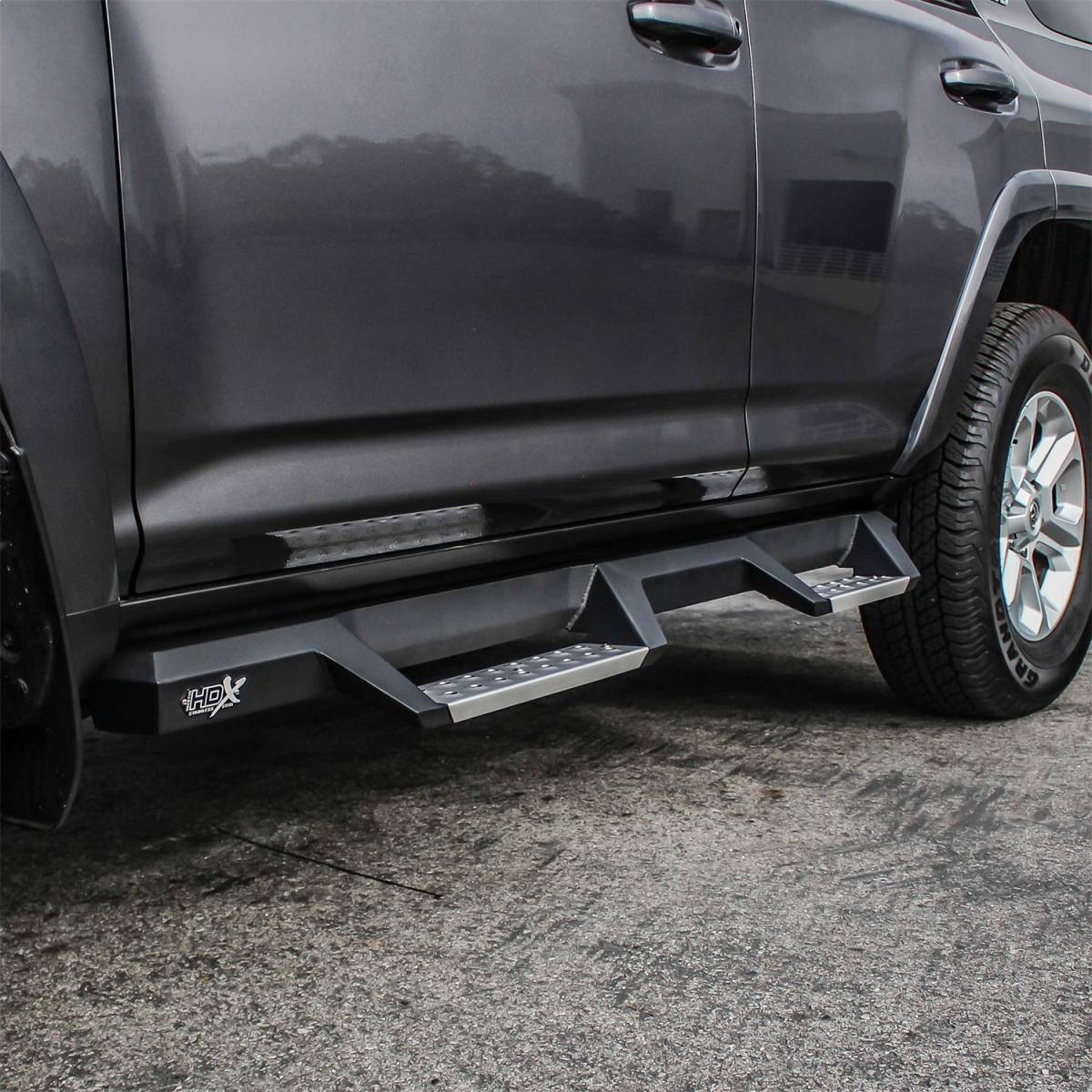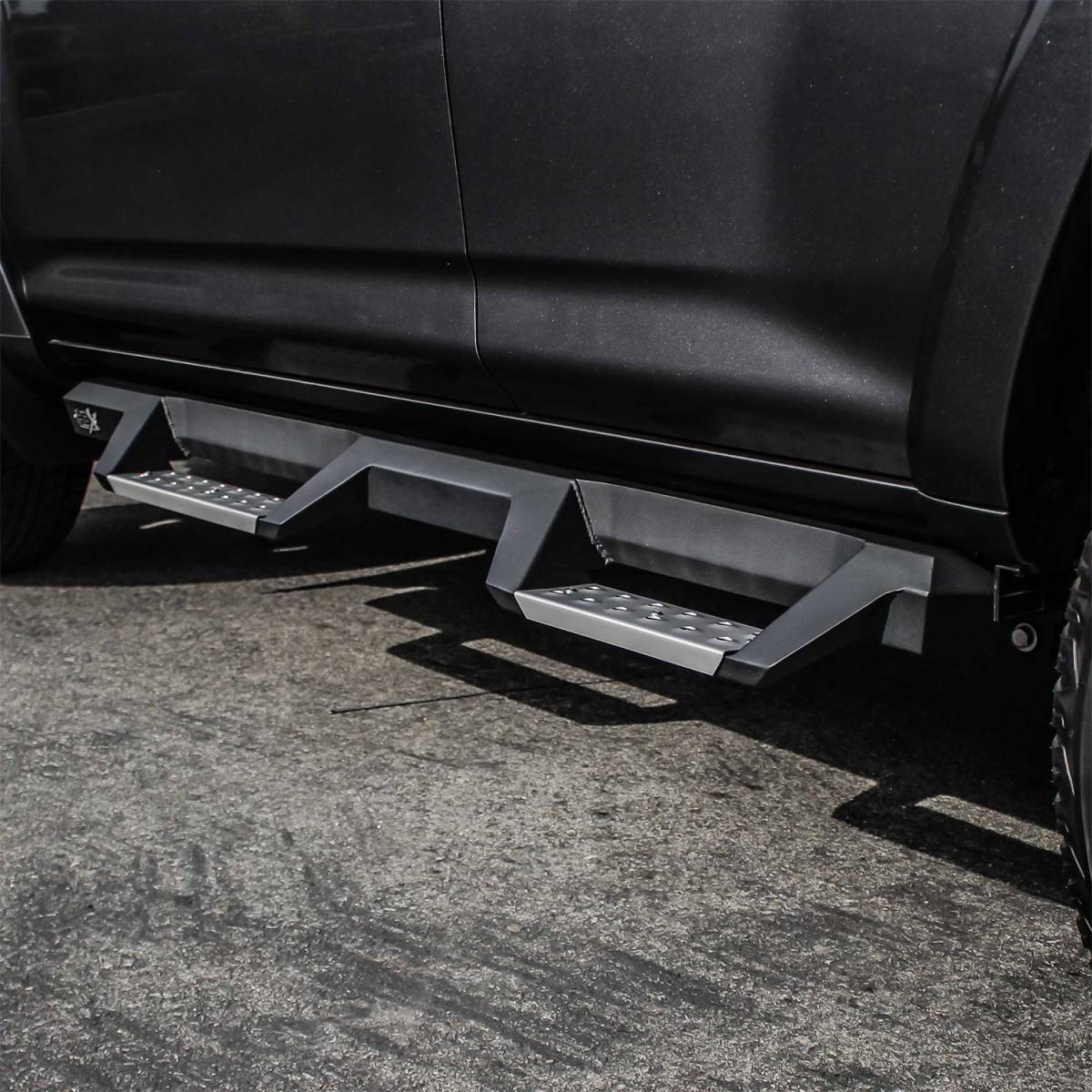 Corrosion Resistant Black Powder-Coated Stainless Steel; Mount Kit Included; Lifetime Warranty; Die Stamped Stainless Steel Step Areas For Maximum Traction; Over 2 More Inches Of Toe/Heel Step Area Than Our Competitors; Features A Notched Bar Design With Heavy-Duty Step Plate; Includes Rust Resistant Stainless Steel Step Plates; Removable Step Plates For Easy Cleaning; Fits Tight To Rocker Panel; Solid 1-Piece Construction; Bolt-On Installation No Drilling Required For Most Applications