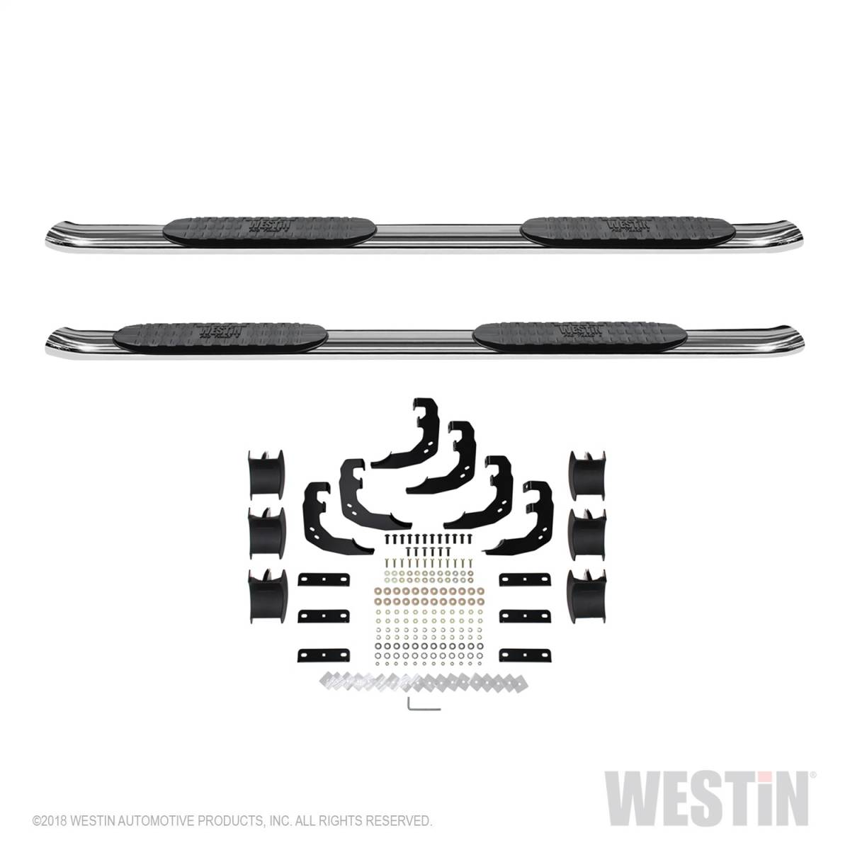 30 Degree Factory Style Bends At Each End Of Tube; Fully Welded Domed Ends; Injection Molded Polymer Step Pad; Injection Molded Bracket Covers Incl. On Some Apps; 4 in. Wide Step Area With Westin Logo; Bolt On Installation; No Drill Required; Lifetime Limited Warranty