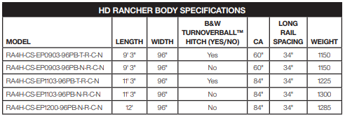 Designed for heavy duty conditions, the NEW Rugby(R) HD Rancher bodies are designed and built for the professional that demands durability, performance and style. The New HD Rancher features: