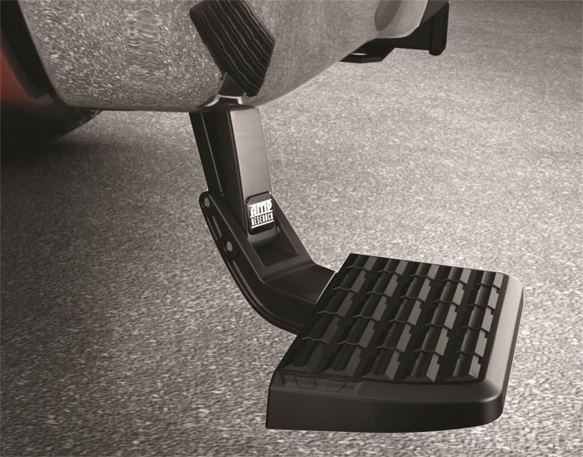 BedStepTM is a clever retractable truck step that is mounted to the bumper/frame attachments at the rear corner of the vehicle. It can be extended down with the flip of a toe to facilitate climbing up into or down from the pickup bed, and it retracts under the rear bumper, nearly out of sight, after use. Leitner invented BedStepTM to make it easier to climb into the bed of a pickup. Midway through the year 2011, AMP Research started distributing the new BedStep2TM side-access stairs for pickup truck beds. These steps install on either side, immediately behind the cab of the vehicle. allowing for access to toolboxes, equipment, and goods in the bed of the vehicle in a manner that is quicker, simpler, and safer.