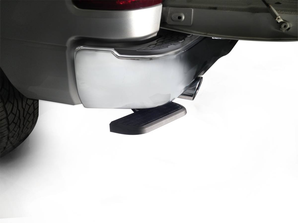 Go ahead and step on it. Bedstep is a real time saver. Not to mention knee and back saver. Strong and rugged, this non-slip, retractable bumper step quickly flips down with the nudge of a foot providing a faster, easier and safer way to load or unload your pickups cargo. Supports up to 300 lbs. Frame mounts under the rear bumper so it works even with an open tailgate or when towing.