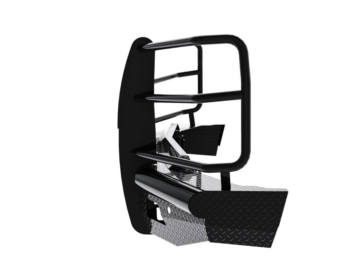 The Legend Series Front Bumper Replacement is the toughest product on the market. It is frame mounted and is one piece fully welded construction. The main body of the bumper is manufactured from 4in. schedule 40 pipe and diamond plate steel, and the grille guard portion is composed of 12 gauge tubing providing wraparound headlight protection. The punched plate grille insert is specifically designed to match the make and model of the vehicle – no expanded metal used. The Legend Series Front Bumper comes standard with a 2in. receiver and most applications keep tow hooks and factory fog lights. This bumper is a valuable addition to any vehicle and will provide maximum peace of mind when driving down the highway.