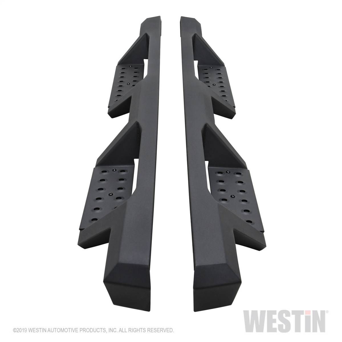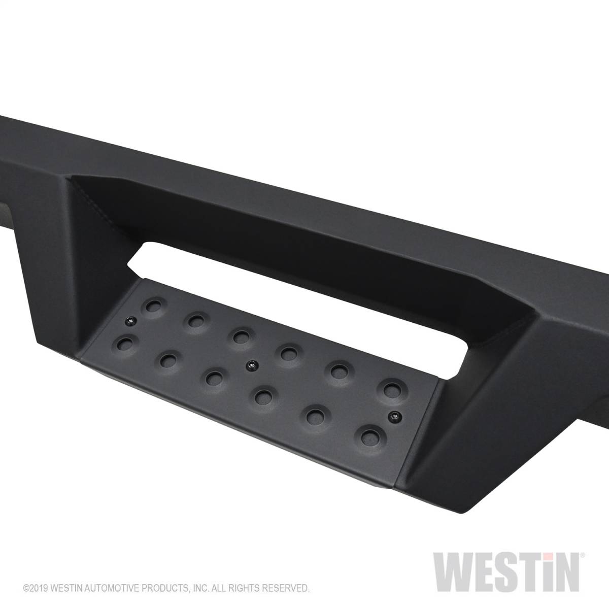 Westins HDX Drop Nerf Step Bars provide the rugged look and function that truck owners need and want. They feature a solid 1-piece steel construction and heavy duty punch plates creating high traction step areas. The HDX Drop Nerf Step Bars also feature Westins notched bar design which provides more than 2" of additional toe/heel placement versus competitive brands. Available in a textured black finish that complements Westin HDX Bumpers. The HDX Drop Steps have vehicle specific applications and include a vehicle specific mount kit, installation hardware and instructions.