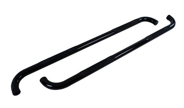 3" Round classic side bars; Black powder coat with a 5 year warranty; Custom fit for an extensive list of applications; Installation hardware, brackets and instructions included; Manufactured of 3" diameter tubing for cab length applications; No drilling required; Non-slip, black composite step pads