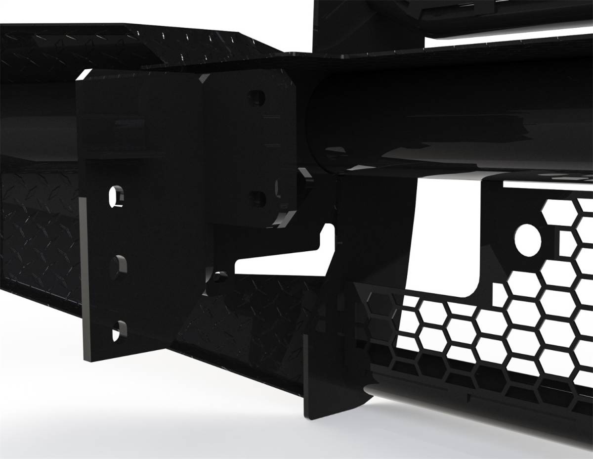 The Legend Series Front Bumper Replacement is the toughest product on the market. It is frame mounted and is one piece fully welded construction. The main body of the bumper is manufactured from 4in. schedule 40 pipe and diamond plate steel, and the grille guard portion is composed of 12 gauge tubing providing wraparound headlight protection. The punched plate grille insert is specifically designed to match the make and model of the vehicle – no expanded metal used. The Legend Series Front Bumper comes standard with a 2in. receiver and most applications keep tow hooks and factory fog lights. This bumper is a valuable addition to any vehicle and will provide maximum peace of mind when driving down the highway.