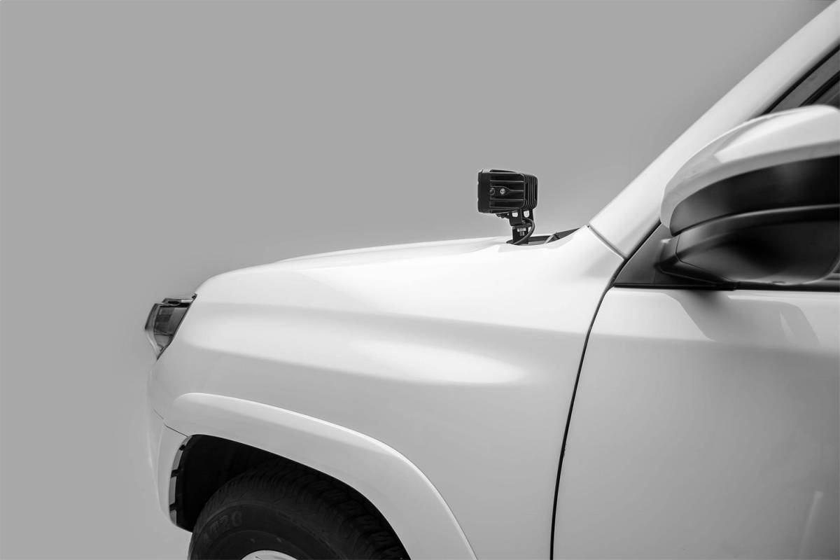 ZROADZ Hood Hinge LED Mounts, commonly known as ditch light brackets, and kits are one of the easiest upgrades to add auxiliary lighting to a vehicle. The small low profile package adds functional utility and the mounting brackets are a simple, no drill, bolt on installation utilizing the factory hood attachment points to mount to the vehicle. Simply loosen the factory hood bolts, slide the ZROADZ bracket into place and re-tighten the bolts. These versatile kits are ideal for lighting the trail, or a work area. ZROADZ Hood Hinge bracket mounts are designed and manufactured in USA.