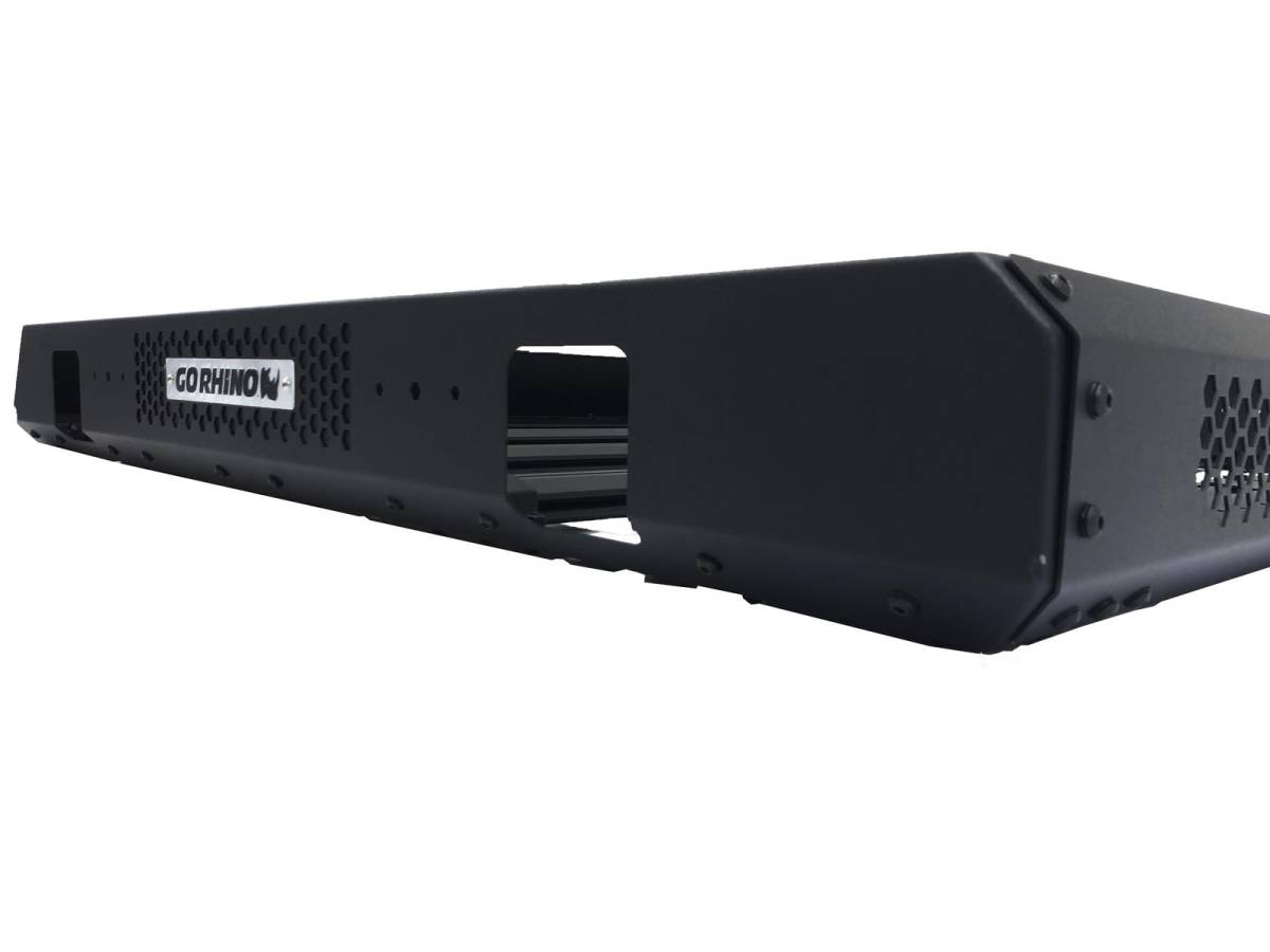 The Go Rhino SRM400 Roof Rack is a basket-style roof rack with removable front and rear fairings, which allow it to be customized to fit oversized items, such as lumber, kayaks or surfboards. It is equipped with Go Rhino’s exclusive 4-CORE aluminum bars, the extruded track system that works with any 1/4x20 hex bolt and provides unlimited mounting options for gear and trail tools. Integrated side light mounts and hole patterns offer a variety of supplemental lighting options. The SRM400 is 52 inches wide, 48 inches front-to-back, and can be mounted on any vehicle’s OE crossbars with the included Rhino Clamp system. Other mounting options are also available. SRM 400 come with a Limited Lifetime warranty on materials and construction and a 5 year warranty on the Textured Black Finish.