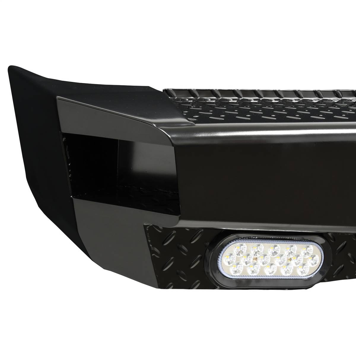 "Stand out from the Competition" with the all new HDX Bandit Rear Bumper from Westin. Built to compliment the style, precision, and durability of the matching HDX Bandit Front Bumper, this all new "off-road style" rear bumper, is clearly a cut above. Unlike the competition, which features an overlapping two piece design and an ugly weld which can warp the metal and is prone to rust, the new HDX Bandit Rear Bumper features an extremely clean, one piece design. The stamped diamond plate step surface is constructed of 11 gauge plate steel and features a welded inner structure for maximum strength. A unique "corner step" design provides extra wide step area to allow easy access to bed and cargo area. HDX Bandit Rear Bumper includes hardware, mounting brackets, flush mount LED license plate lights and two standard LED back up lights. Fully compatible with blind spot monitors and parking sensors, and can also accommodate an OEM hitch. HDX Bandit Rear is designed for heavy duty performance and extended life that is backed by a 3 year warranty with a black powder coat finish. The new HDX Bandit Rear Bumper is truly in a class by itself.
