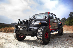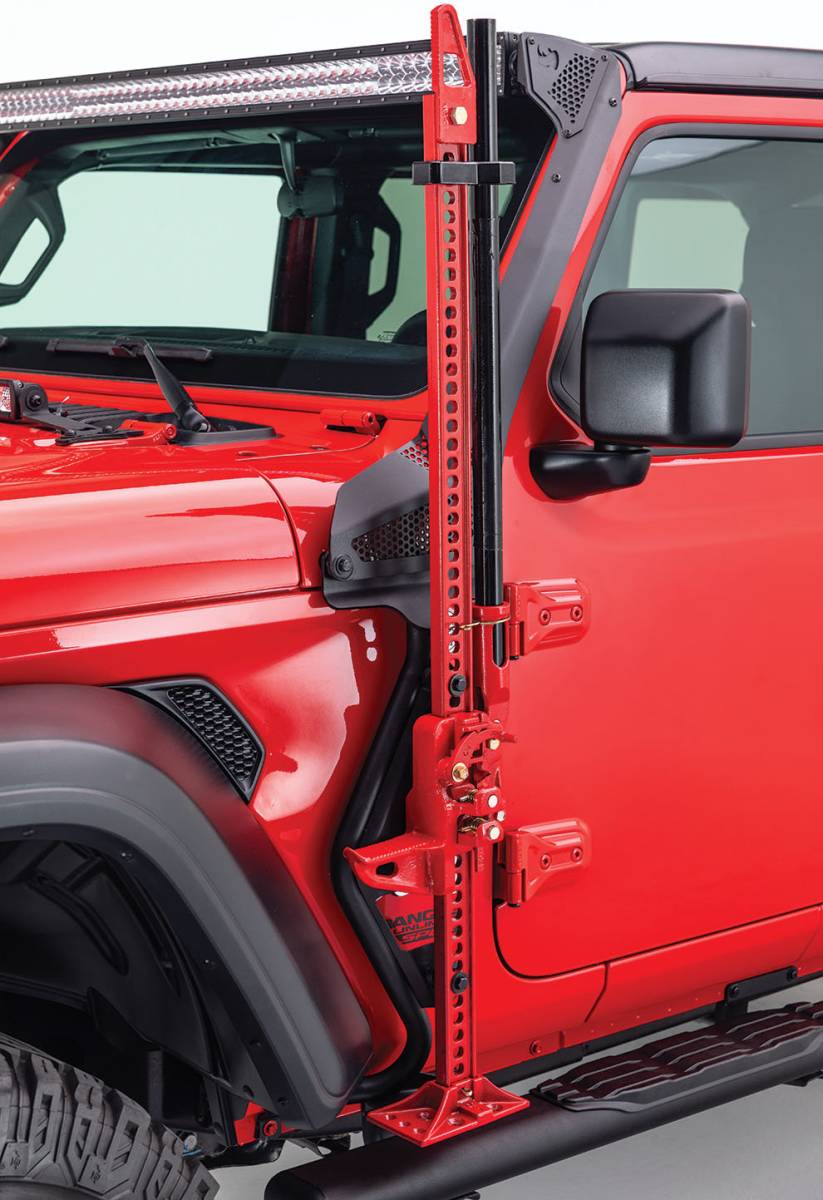 Limited Lifetime warranty on materials and construction and a 5 year warranty on the Textured Black Finish.; Can be used with Go Rhino XE Series Windshield Light Frame (Part #: 730500T); Easy, no-drill installation; Exclusive three-point mounting system to eliminate rattling against vehicle; Exterior mounting frees up precious cargo space inside vehicle; Fits any height farm-style tall jacks, including major name brands; Secures high clearance jack in space-saving vertical position; Strong steel construction with Geomet-coated hardware for extra corrosion resistance; Utilizes factory side step mounts on lower rocker and cowl mounts on upper section