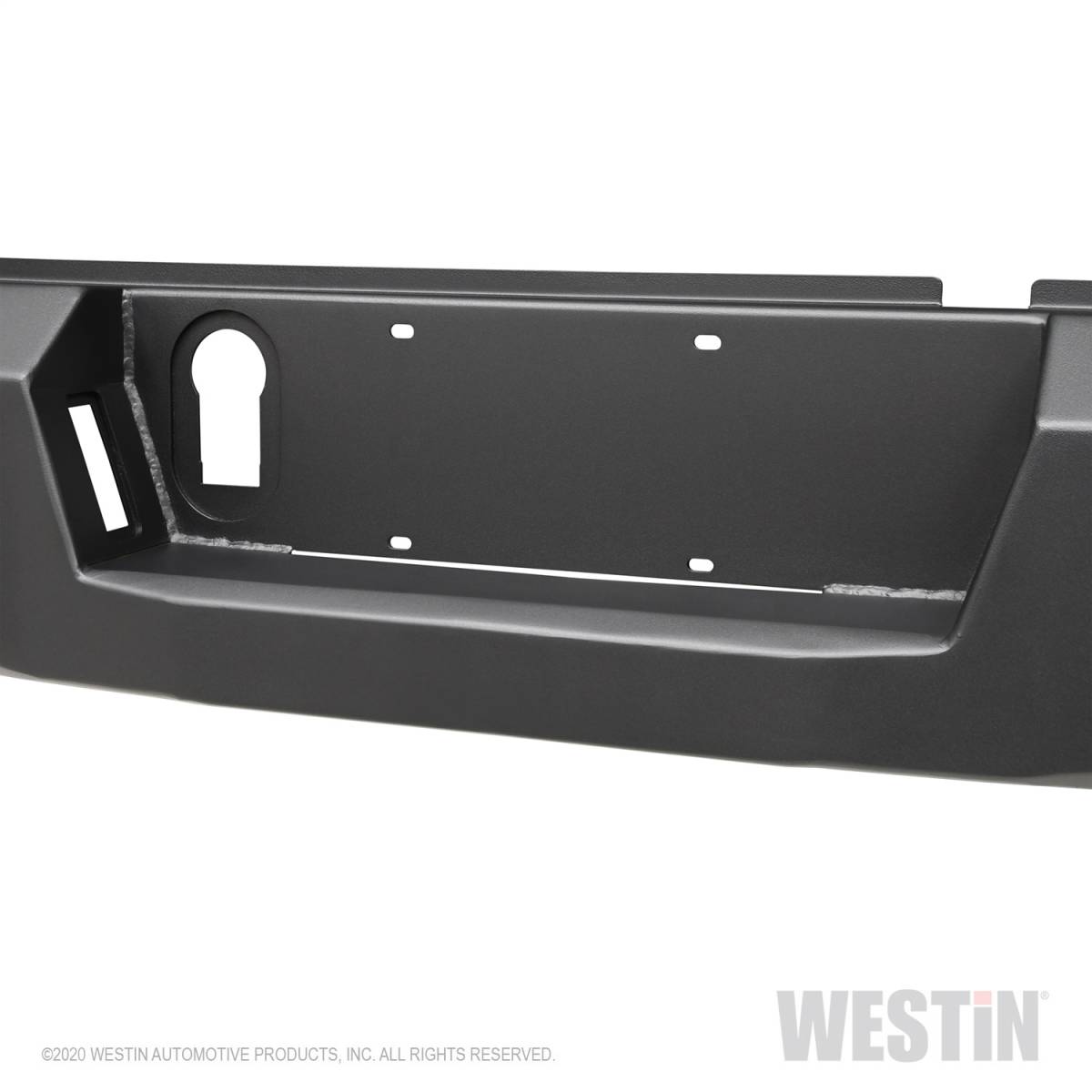 "High and Tight" best describes the great looking new Pro-Series Rear Bumpers from Westin. This all new "off road style" rear bumper features a light weight, slim, one-piece design, adding a modern, aggressive look to your truck. Built to improve ground clearance and departure angles when driving in more rugged terrain. The Pro-Series Rear Bumper is fully compatible for OEM parking sensors, hitch, and blind spot monitors. It also includes two LED license plate lights and can accommodate LED back up lights (sold separately). Featuring a textured black finish with an e-coated base coat, providing long lasting corrosion protection from the elements with easy bolt-on installation. Just add the original Pro-Mod Front Bumper, and your transformation from stock to custom is complete.