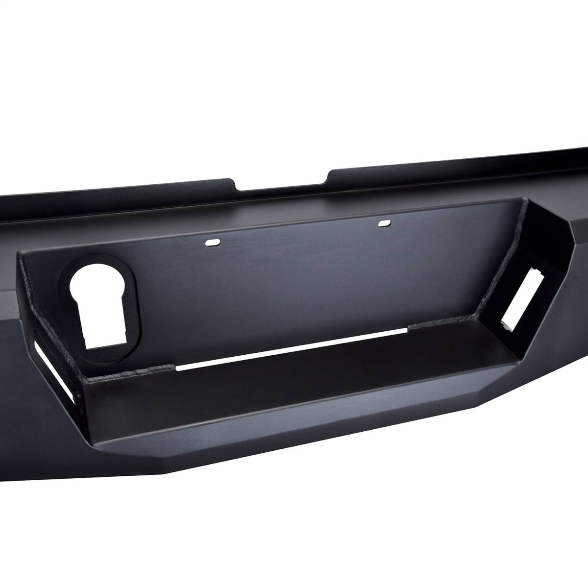 "High and Tight" best describes the great looking new Pro-Series Rear Bumpers from Westin. This all new "off road style" rear bumper features a light weight, slim, one-piece design, adding a modern, aggressive look to your truck. Built to improve ground clearance and departure angles when driving in more rugged terrain. The Pro-Series Rear Bumper is fully compatible for OEM parking sensors, hitch, and blind spot monitors. It also includes two LED license plate lights and can accommodate LED back up lights (sold separately). Featuring a textured black finish with an e-coated base coat, providing long lasting corrosion protection from the elements with easy bolt-on installation. Just add the original Pro-Mod Front Bumper, and your transformation from stock to custom is complete.