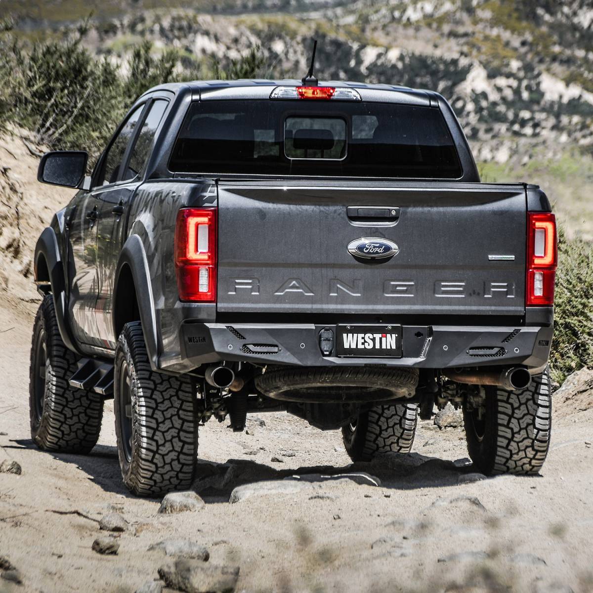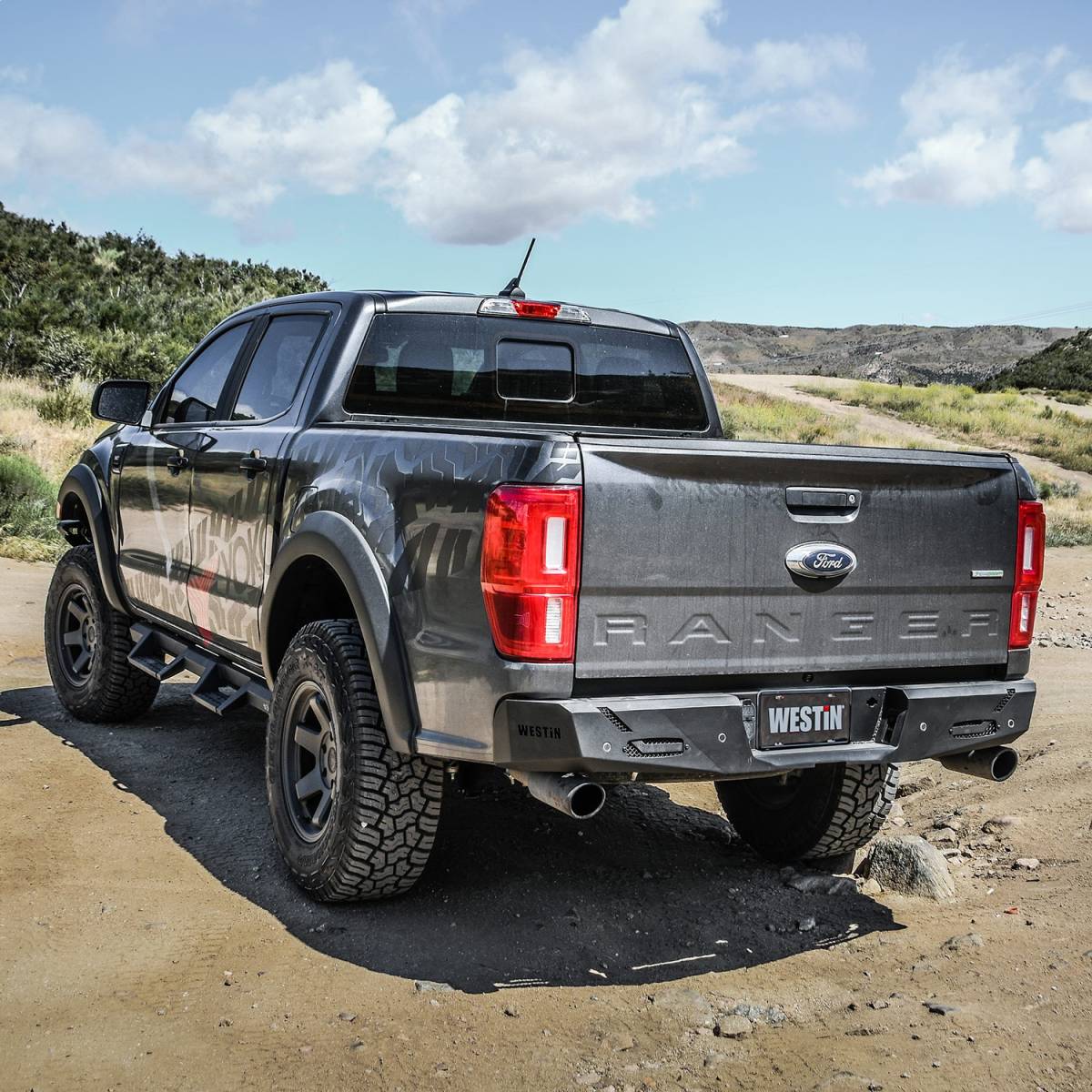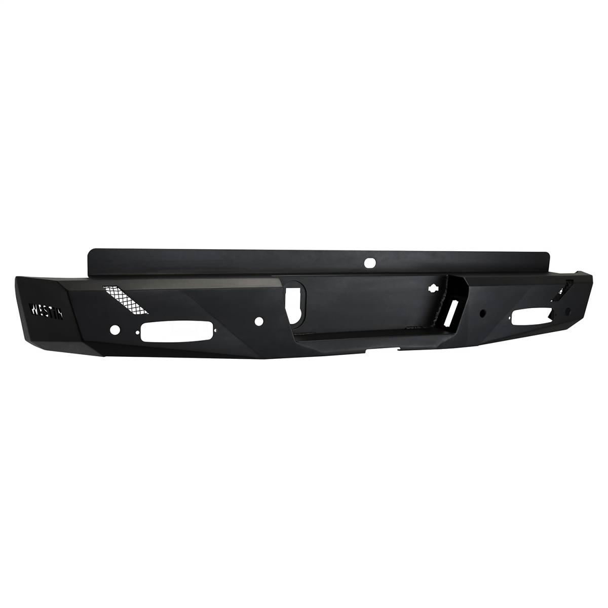 "High and Tight" best describes the great looking new Pro-Series Rear Bumpers from Westin. This all new "off road style" rear bumper features a light weight, slim, one-piece design, adding a modern, aggressive look to your truck. Built to improve ground clearance and departure angles when driving in more rugged terrain. The Pro-Series Rear Bumper is fully compatible for OEM parking sensors, hitch, and blind spot monitors. It also includes two LED license plate lights and can accommodate LED back up lights (sold separately). Featuring a textured black finish with an e-coated base coat, providing long lasting corrosion protection from the elements with easy bolt-on installation. Just add the original Pro-Mod Front Bumper, and your transformation from stock to custom is complete.