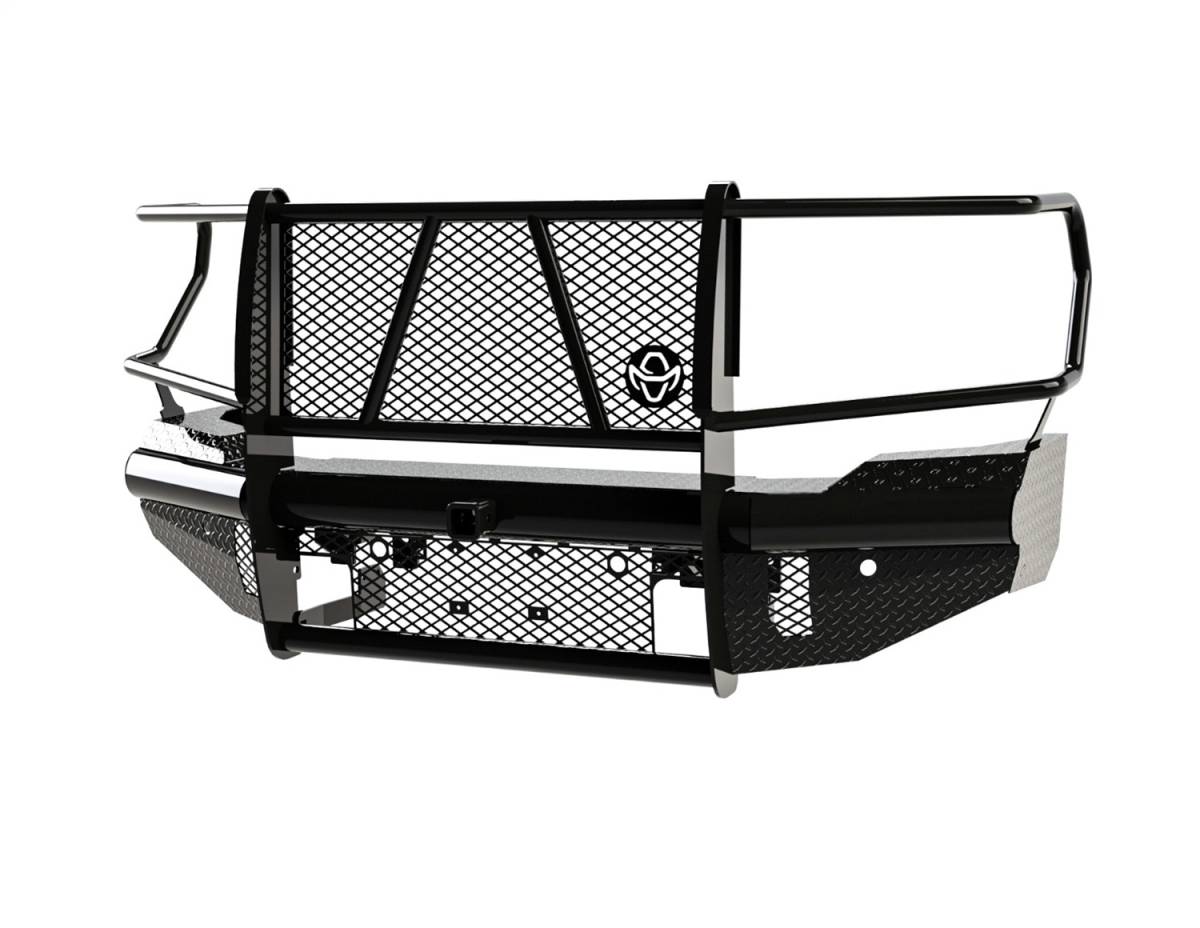 The Legend Series Front Bumper Replacement is the toughest product on the market. It is frame mounted and is one piece fully welded construction. The main body of the bumper is manufactured from 4in. schedule 40 pipe and diamond plate steel, and the grille guard portion is composed of 12 gauge tubing providing wraparound headlight protection. The punched plate grille insert is specifically designed to match the make and model of the vehicle – no expanded metal used. The Legend Series Front Bumper comes standard with a 2in. receiver and most applications keep tow hooks and factory fog lights. This bumper is a valuable addition to any vehicle and will provide maximum peace of mind when driving down the highway.