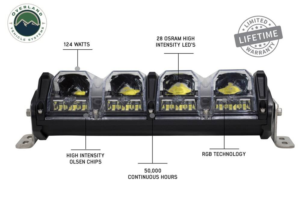 Warranty: The EKO LED Light Bar is produced to the highest manufacturing standards and are covered by a limited lifetime warranty that protects the original purchasers against defects in material and workmanship. Go to Overland Vehicle Systems website for more information regarding the warranty.