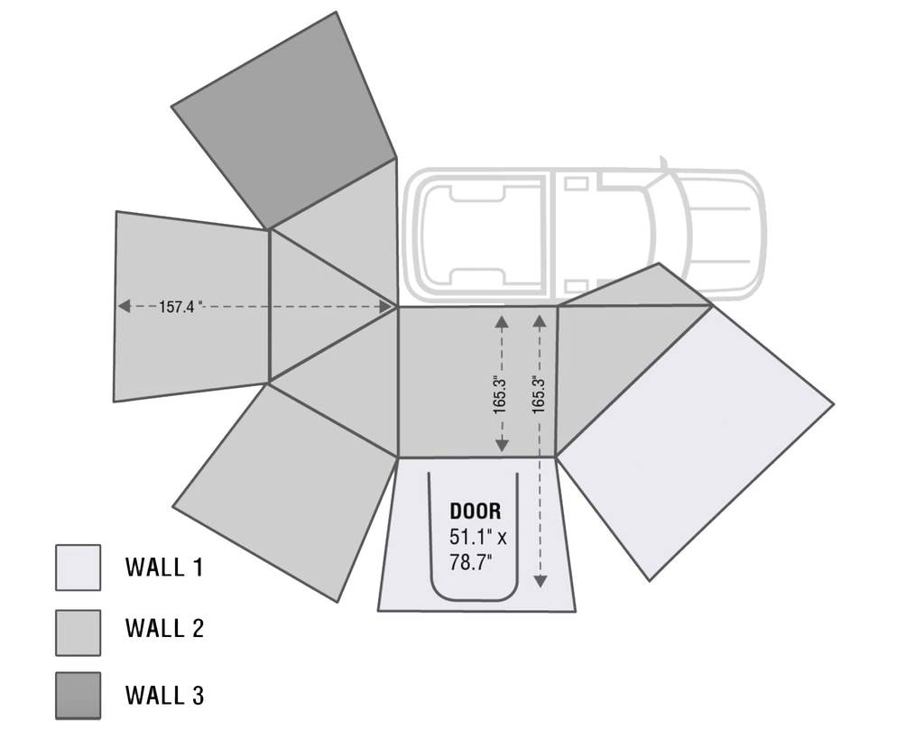 Nomadic Awning Wall 3 Nomadic 270 Passenger Awning enclosure to protect you from Wind, Rain, Sun and Extreme Weather conditions. Completely zips in and extends your Nomadic 270 Awning to the ultimate shelter.