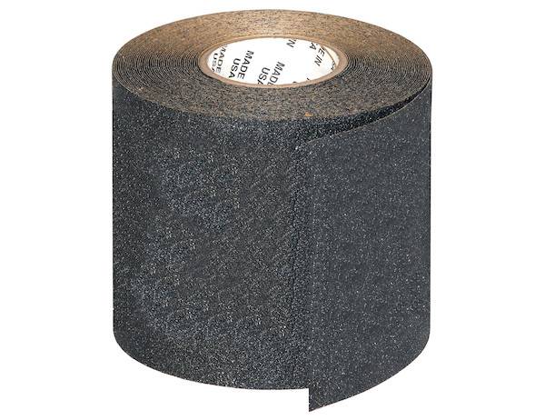 Buyers Products Anti-Skid Tape Rolls have a "46" grit surface to improve traction where needed. Ideal for bumpers, steps, walkways, or other hazardous foot traffic areas, this tape is resistant to detergents and solvents to elongate its durability and wear. The tape is simple to apply; just peel and stick. It can help meet OSHA and ADA requirements and each roll is individually boxed. Available in three widths, rolls are 60 ft long and can be cut to length.