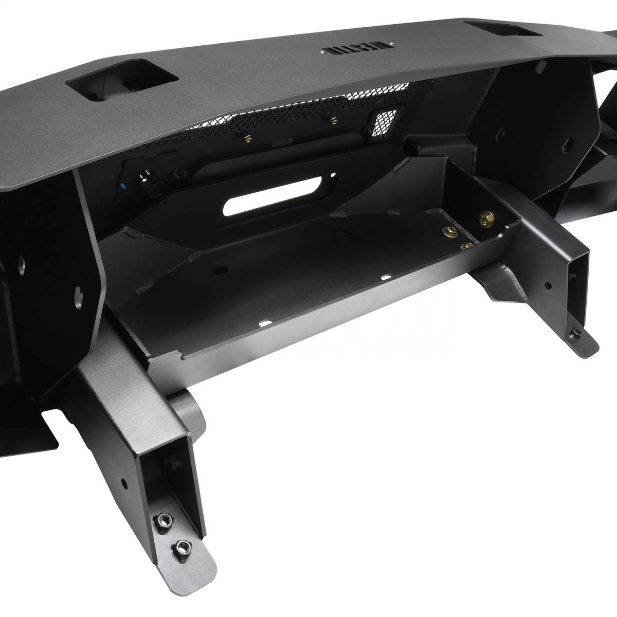Low Profile Design; Hardware And Mounting Brackets Included; E-Coated Base Coat Provides Long Lasting Corrosion Protection; Available In Textured Black Finish; The OEM Bumper That Fits Most 8000-12000 Lbs Winch Models; Accommodates Recessed Hawse Fairlead For Maximize Approach Angle; Constructed Of 10 Gauge Steel For Strength And Style; Heavy-Duty 4 Gauge Winch Mount Center Section; Features Large Winch Access Holes For Easier Operation; Provides Two Recovery Points For Shackles; Configured To Accept Most Single Row 20 in. Led Light Bars; Available In Two Bull Bar Styles/Round And Angular