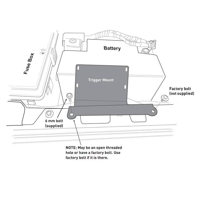 Use the TRIGGER Jeep JL-JT Inner Fender Controller Bracket to expand the connectivity of your TRIGGER Accessory Control System! FITS 2018+ JEEP WRANGLER JL AND GLADIATOR JT MODELS! *Does not work with JL 3Ltr Eco Diesel* The Trigger JL underhood mounting system is designed for quick and easy installation in the space between the battery and inner wheel-well sheet metal of a 2018+ Jeep Wrangler JL. Mount the Trigger controller module in an otherwise unused location under the hood, adjacent to the battery. It requires no drilling and is easily removable without causing any damage to the vehicle. Laser-cut aluminum sheet metal for long-lasting strength and durability. Designed only for use with the Trigger Wireless Control System (not included). For use with the TRIGGER 4 PLUS and 6 SHOOTER Wireless Accessory Control Systems.