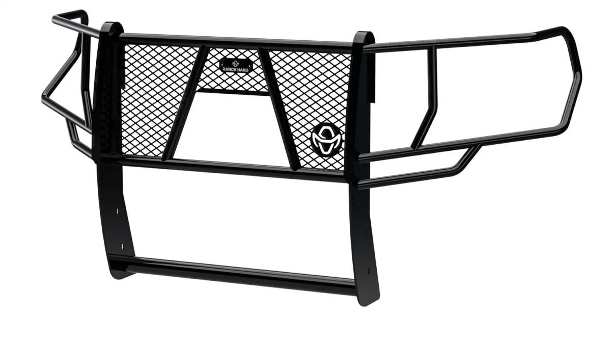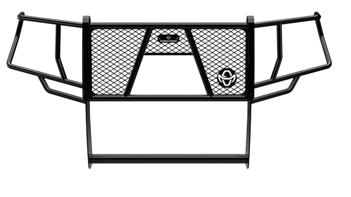 The Ranch Hand Legend Grille Guard is the icon of the vehicle protection aftermarket industry. The quality and the style of the Ranch Hand Legend Grille Guard is unmatched. You need the peace of mind that when you are out on the road, you have done everything you can to protect your vehicle and your family. Providing outstanding protection, the Legend Grille Guard has a one piece fully welded construction and is frame mounted in four locations for maximum strength and to eliminate vibration.The grille guard is constructed from 12 gauge tubing and has 5/16in. upright thickness and features punched grille inserts specifically designed to match the make and model of the vehicle – no expanded metal used. All Ranch Hand products are finished with a durable black powder coat paint. Most applications allow you to maintain factory tow hooks.