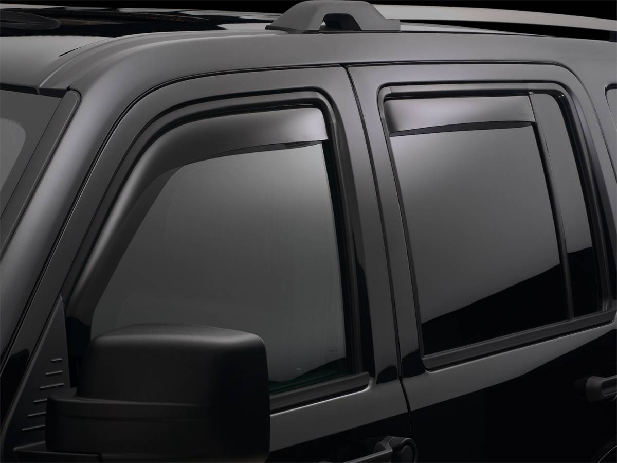 WeatherTech Side Window Deflectors offer you fresh air enjoyment with an original equipment look. They are crafted in Germany from the finest 3mm lightly-tinted acrylic material available. Installation is quick and easy, with no exterior tape needed. WeatherTech Side Window Deflectors are precision-machined to perfectly fit your vehicle. These low profile window deflectors help to reduce wind noise and allow interior heat to escape. Also available in dark tint for most vehicles.