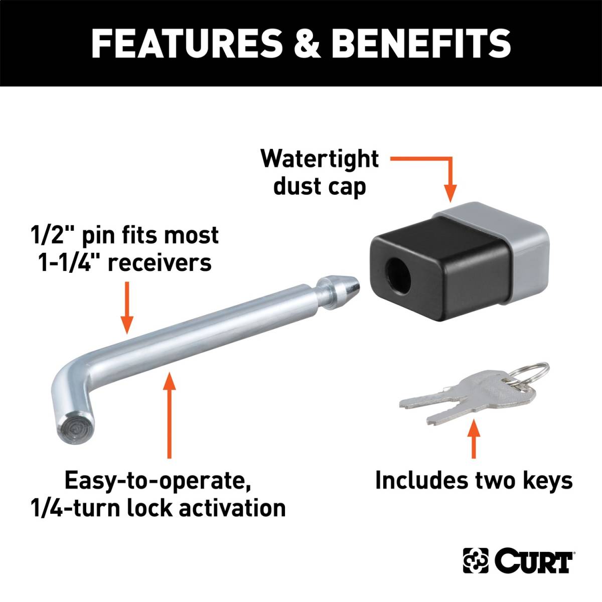 1/2" Hitch Lock (1-1/4" Receiver Deadbolt Chrome)
