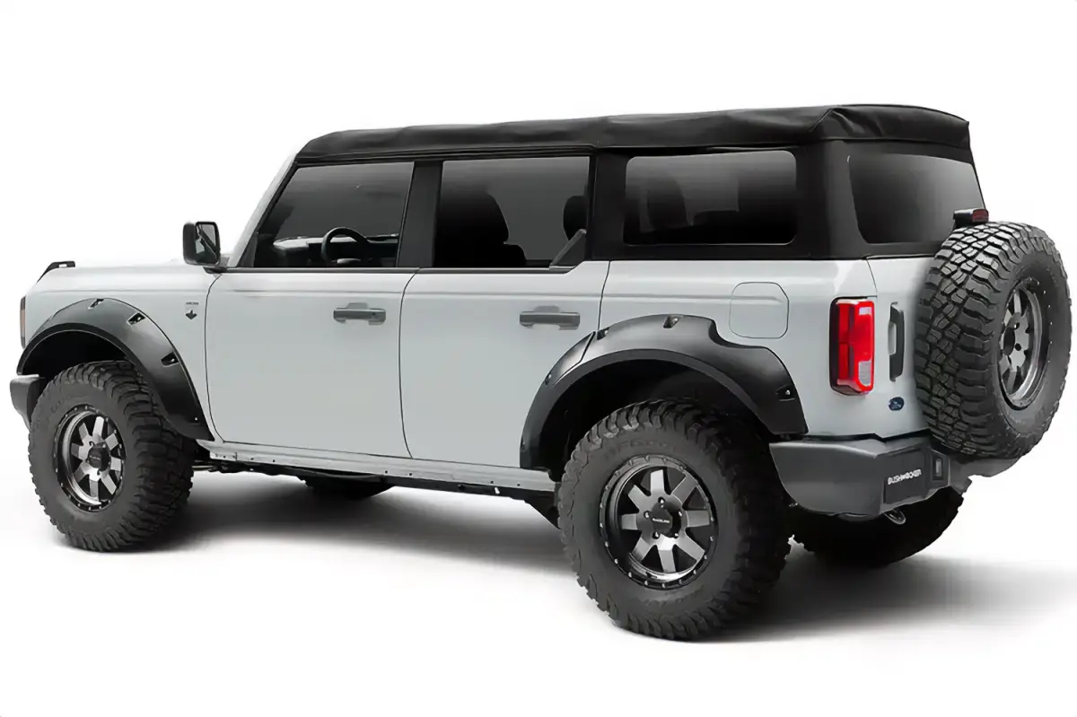 Precision engineered for a perfect fit that provides the rugged look of bolted-on flares without drilling through the body; Tire coverage varies with vehicle: 0.5 In.- 3 In.; Whether on-road or off, our heavy-duty hardware holds the flares securely in place; 100% UV protected smooth matte black smooth finish can be easily painted; Made of durable, yet flexible Dura-Flex 2000 ABS material; Installs easily with little to no drilling/trimming required -- all hardware is included; Limited Lifetime Warranty; Installs easily with little to no drilling/trimming required -- all hardware is included