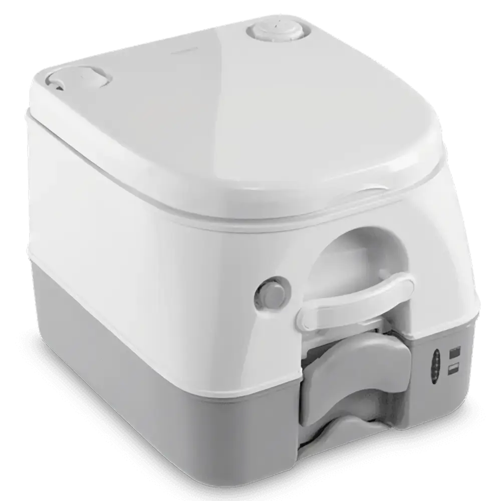 A portable and convenient lightweight toilet that is perfect for smaller vehicles and tents due to the unique space-saving design. The push-button technology makes it easy to use and will always ensure a powerful and hygienic flush with less pump and less mess.