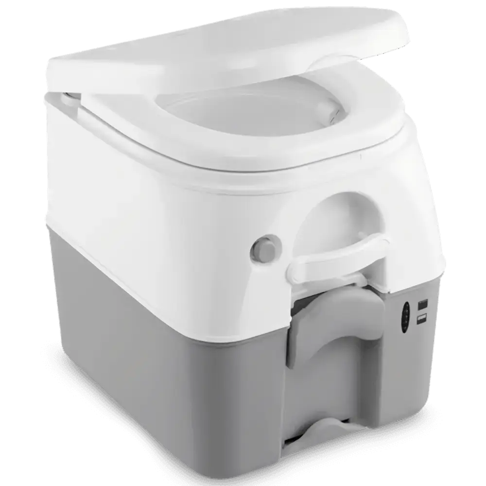 Powerful flushing at the touch of a button without constant pumping or batteries – it's what sets the SaniPottie 970 series apart from other portable toilets.