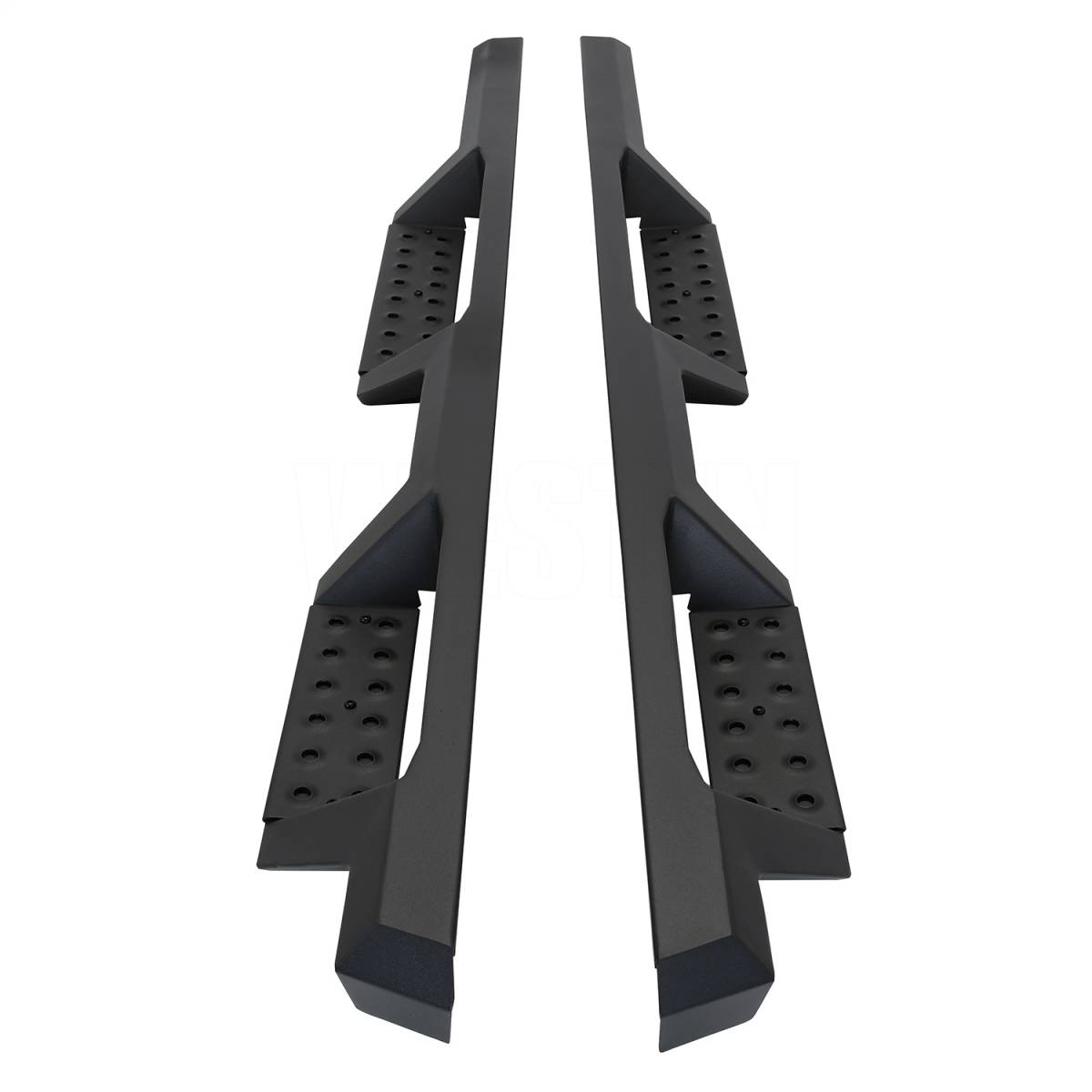 Die Stamped Stainless Steel Step Areas For Maximum Traction; Over 2 More Inches Of Toe/Heel Step Area Than Our Competitors; Removable Step Plates For Easy Cleaning; Fits Tight To Rocker Panel For Solid Fit And Rugged Look; Solid 1-Piece Construction; Bolt-On Installation No Drilling Required For Most Applications; Mount Kit Included; 3 Year Warranty