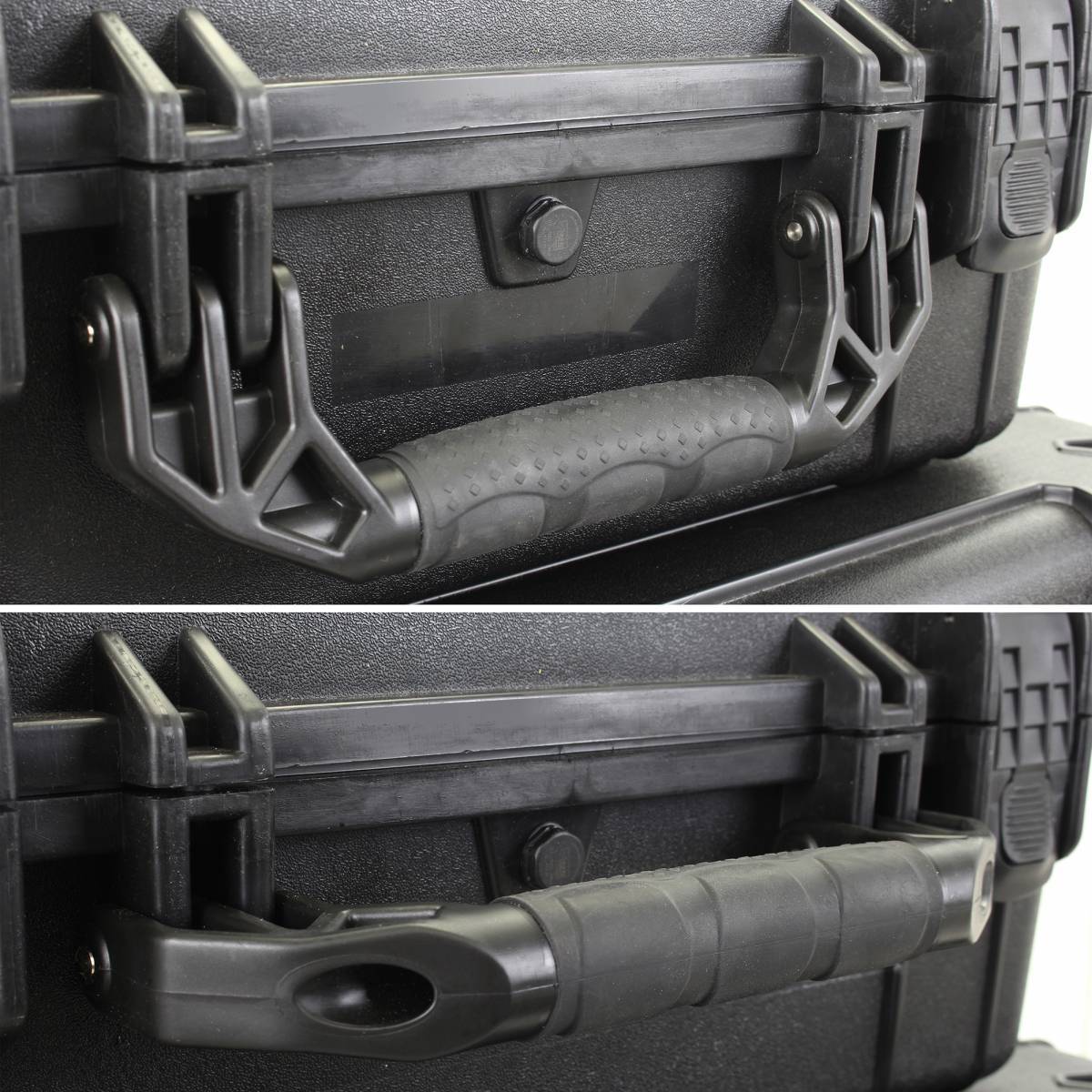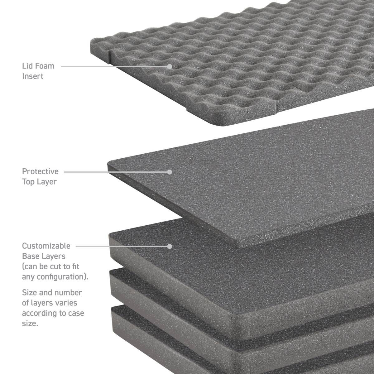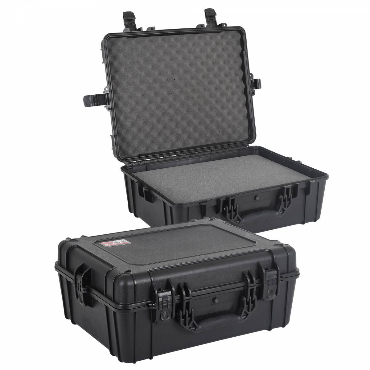 Foam included made in Mexico; IP67-rated dustproof and waterproof with airtight rubber gasket seal; Provision to add locks for security purposes; Steel pin hinges add strength and durability; Stackable design with exterior grooves for additional cases to snap into place; Limited Lifetime Warranty; Boxes made in the U.S.A.; Protects your valuables and gear from dust, dirt and moisture; O.D. Large Size: 24.53" x 19.55" x 9.9"; I.D. Large Size: 21.92" x 16.96" x 8.94"; Injection molded from high impact, tough, light-weight polypropylene copolymer (PPC); Virtually indestructible and UV-safe for years of outdoor use; Patented, family-friendly finger-safe flex latches; Rubberized handles with softer grip for comfort; Automatic air valve releases pressure for airline transport