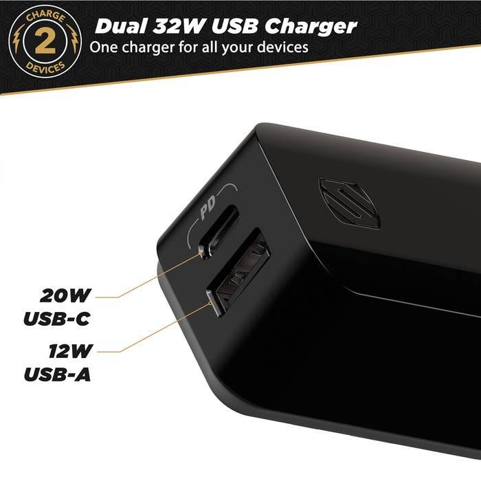 • The Type-C port provides up to 20-Watts of power for all of today’s latest and greatest USB-PD or USB-C devices while the extra 12-Watt, standard USB port fast charges all USB-A powered devices