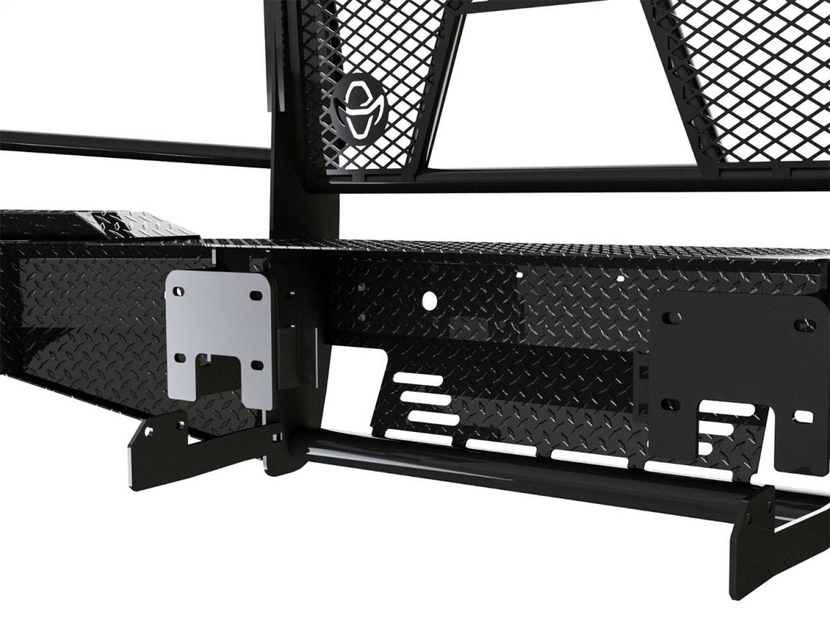 The Summit Series Front Bumper Replacement still provides superior protection similar to the Legend while offering an alternative style with reduced weight. This bumper is designed and ideal for half ton trucks. It is frame-mounted and is one-piece fully welded construction. The main body of the bumper is manufactured from diamond plate steel and the grille guard portion provides wraparound headlight protection. The punched plate grille insert is specifically designed to match the make and model of the vehicle – no expanded metal used. Most pre-2014 Summit Series Replacement Bumpers allow for the optional patented H2R (Hidden 2 in. Receiver). In some applications, factory fog lights and tow hooks can be retained.