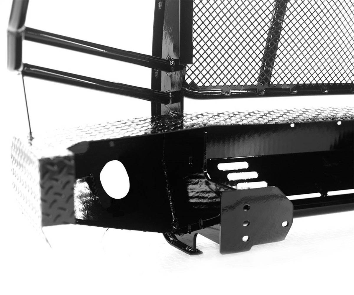 The Summit Series Front Bumper Replacement still provides superior protection similar to the Legend while offering an alternative style with reduced weight. This bumper is designed and ideal for half ton trucks. It is frame-mounted and is one-piece fully welded construction. The main body of the bumper is manufactured from diamond plate steel and the grille guard portion provides wraparound headlight protection. The punched plate grille insert is specifically designed to match the make and model of the vehicle – no expanded metal used. Most pre-2014 Summit Series Replacement Bumpers allow for the optional patented H2R (Hidden 2 in. Receiver). In some applications, factory fog lights and tow hooks can be retained.