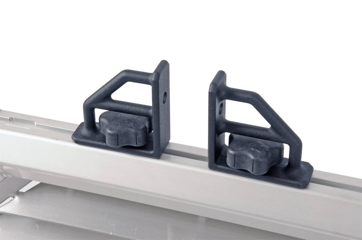 Dee Zee Cab Rack Tie Downs - Cargo Management. Dee Zees Cab Rack Tie Downs fit the integrated accessory channel in Dee Zee cab racks. The heavy duty cast aluminum tie downs allow you to anchor cargo. Sold in pairs.