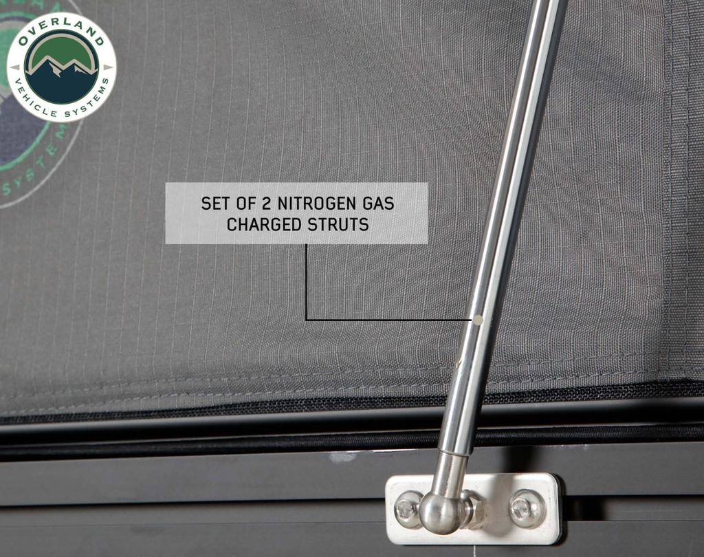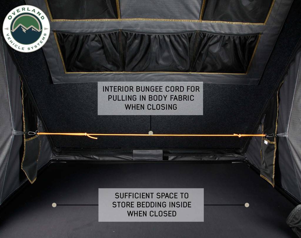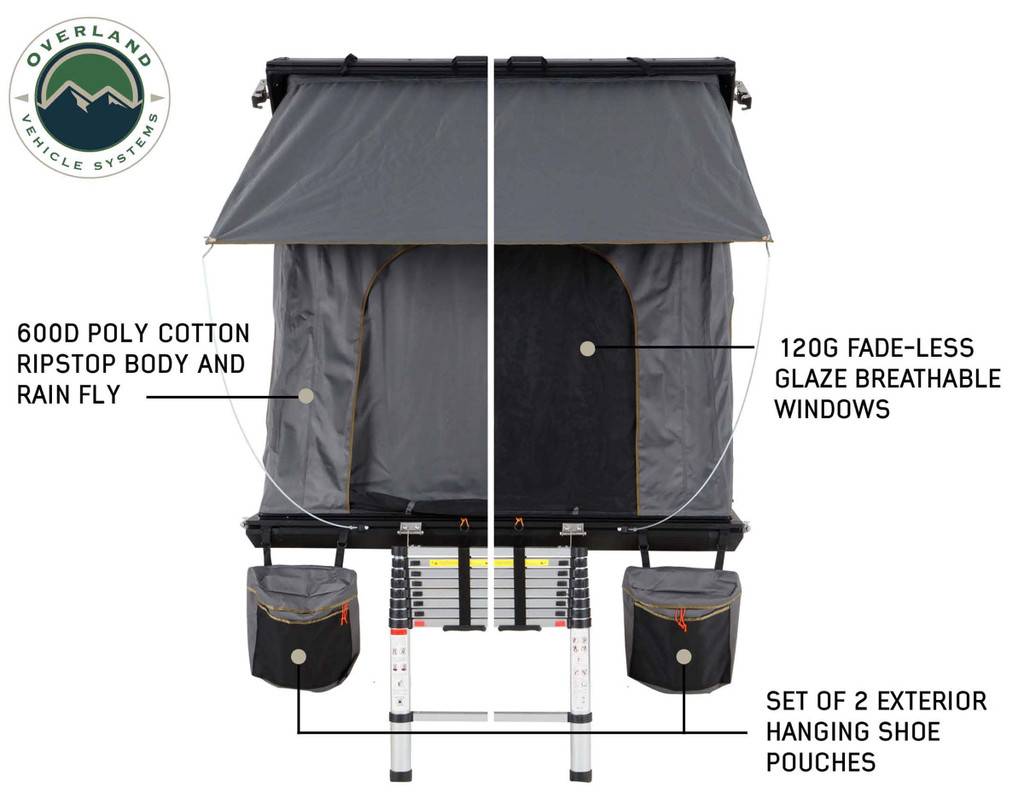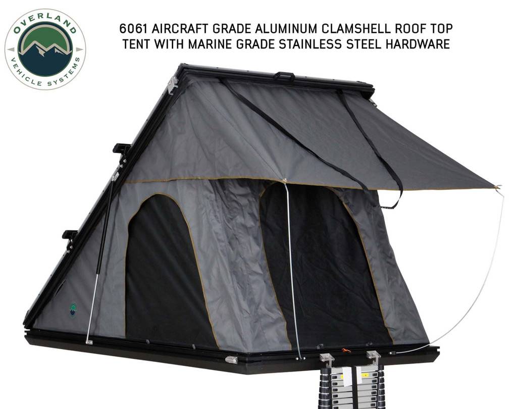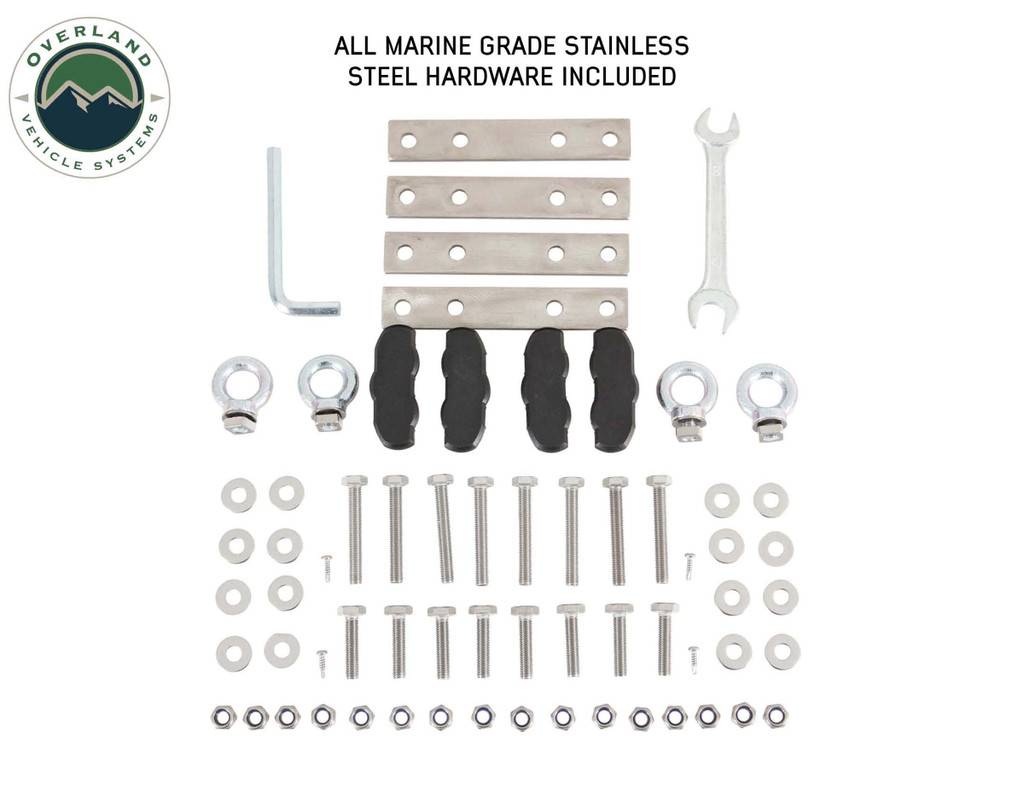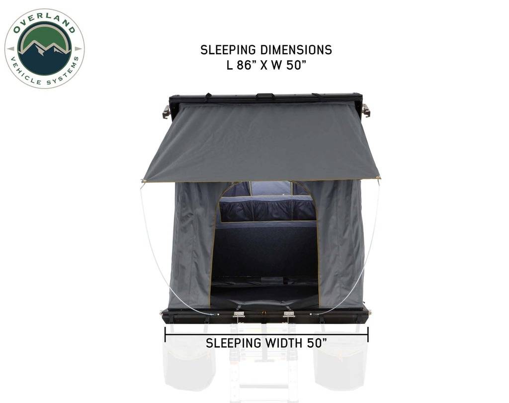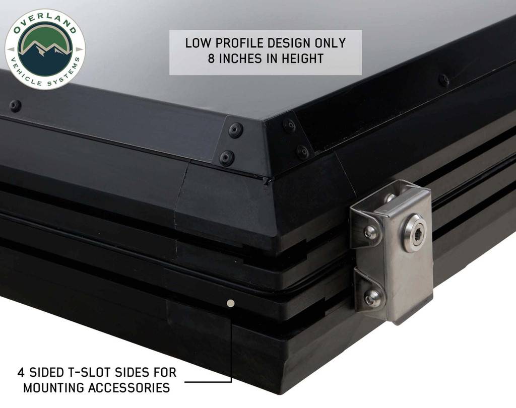 Overland Vehicle Systems Mamba III Hard Sided Roof Top Tent Premium Hard Sided Roof Top Tent: The Mamba III is the best in class all Aluminum-Bodied Hard Side Roof Top Tent with more standard included options. The Mamba III has a Set Up and Put Away time of less than a minute. For Set Up: Unlock two latches, pull down your ladder and insert 2 window rods. Reverse the process for Put Away. The Overland Vehicle Systems Mamba III comes standard with an Anti-Condensation Mat under the thick 2” Mattress, Standard Cross Bars for additional storage, and an insulated honeycomb base. The Mamba III Roof Top Tent has a clean, rugged, durable, sleek and an aerodynamic design compared to traditional Roof Top Tents. Superior Functionality: The Overland Vehicle Systems Mamba III Roof Top Tent has t-slot accessory channels to help mount recovery gear and many other smaller light weight accessories. The Mamba III Roof Top Tent comes with a standard crossbar to help carry extra gear for your adventure. Features: The Overland Systems Mamba III Hard Sided Roof Top Tent is manufactured with Premium 600D Rip Stop Waterproof Tent Body, Window Screens are 120G Environmental Fadeless Breathable Gaze, 2 Nitrogen Gas Charged Struts that are 35/5” long X 1”, Ballistic Nylon Pull Strap, Aluminum Aircraft Grade Handle, Marine Grade 304 Stainless Steel Hardware, Universal, Adjustable Aluminum Channel, Military Specked Weatherproof Seal, and the Base is 1” Aluminum Honeycomb Insulated. Included: Free LTL Shipping and Utilizing a Shipping carrier with Lift Gate on their vehicle. The Overland Vehicle Systems Mamba III Hard Sided Roof Top Tent Comes with; Mounting Hardware, Window Rods, 2” Mattress, Ani-Condensation Mat, Insulated Honeycomb Base, and Crossbars. See the complete list of features below. Simple Installation: With the help of a friend, lift on your desired Rack. Follow the detailed instructions we provide. Four-Year Limited Warranty: Overland Vehicle Systems Mamba III Hard Sided Roof Top Tent comes with a 4 Year Limited Warranty. Overland Vehicle Systems warranty includes coverage for products with manufacture defects in materials and workmanship. Overland Vehicle Systems will not be responsible for incorrect installation on your Vehicles Factory (OEM) of Aftermarket Mounting solution you choose. Application: Overland Vehicle Systems Mamba III Hard Sided Roof Top Tent is a Universal Item. Please refer to all your Vehicle’s and/or Aftermarket product Installation and Warranty information prior to installing your Overland Vehicle Systems Mamba III Hard Sided Roof Top Tent. Overland Vehicle Systems Mamba III Hard Sided Roof Top Tent Specifications: Base Material: Aircraft Grade Aluminum Body: Premium 600D Rip Stop Polyester Canvas Waterproof Material Window Screens: 120G Environmental Fadeless Breathable Gaze Mattress: 2” High Density Foam Anticondensation Mat: Yes @ ¾” Thick Base: 1” Aluminum Honeycomb Insulated Inside Storage: Oversized Storage Loft Base Storage: 2 Built in Storage Bags Closed Dimensions: 91” x 55.5” x 8” Open Dimensions: 91” x 55.5” x 64” Sleeping Area: 86” x 50” Sleeping Count: 2 -3 Weight: 150 Lbs Hardware Included: Yes Storage Rack Included: Yes Struts: 2x Nitrogen Gas Charged Struts, 35.5” x 1” 400N Pull Down Strap: Ballistic Nylon Handles: Aircraft Grade Aluminum Seal: Military Specked Waterproof Grade Set Up: Less than a Minute, Easiest of all Roof Top Tents Put Away: Less than a Minute, Easiest of all Roof Top Tent Details: Part Number: 18109901 UPC Code:810038734187 Weight: 150 Lbs Cleaning: Soap and Water Overland Vehicle Systems is the Leader in Hard Sided Roof Top Tents, Soft Sided Roof Top Tent, 270 Awnings, 180 Awnings, Pull Out Awnings, Recovery Gear, Air Management, Dry Storage Boxes, Camp Kitchens, Seat Covers for Jeeps, Floor Liners for Jeeps, Replacement Soft Tops and Camping Equipment.