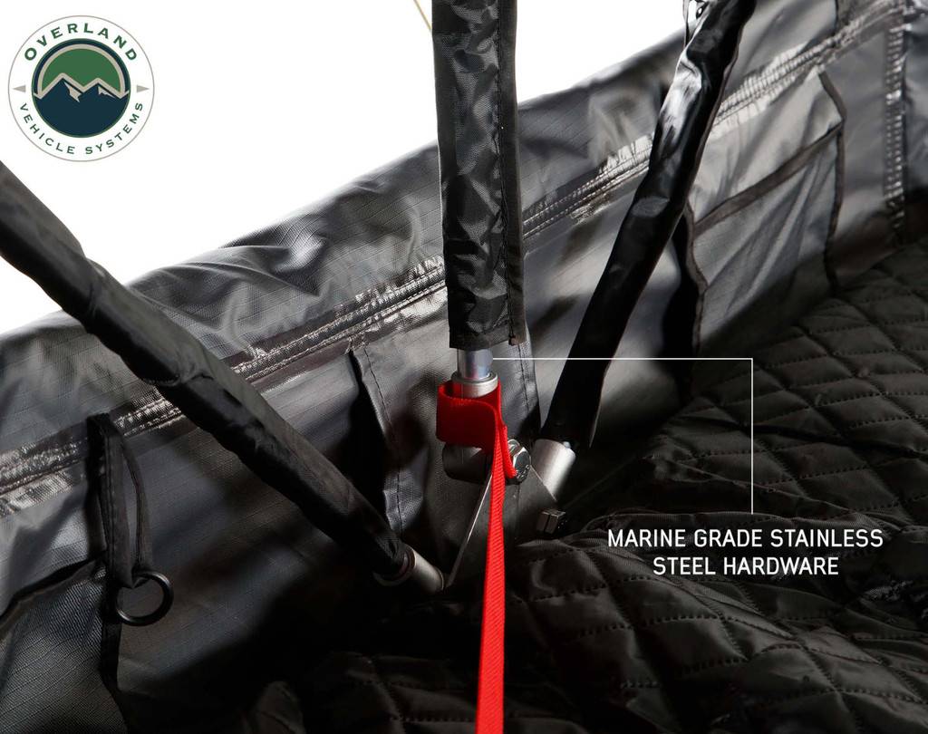 Our Nomadic tents start with a double insulated black one-piece diamond plate base featuring marine grade stainless steel hinges and hardware. Our 600D Premium Double Rip Stop Polyester Cotton Canvas bodies will handle the harshest conditions you can put yourself in.