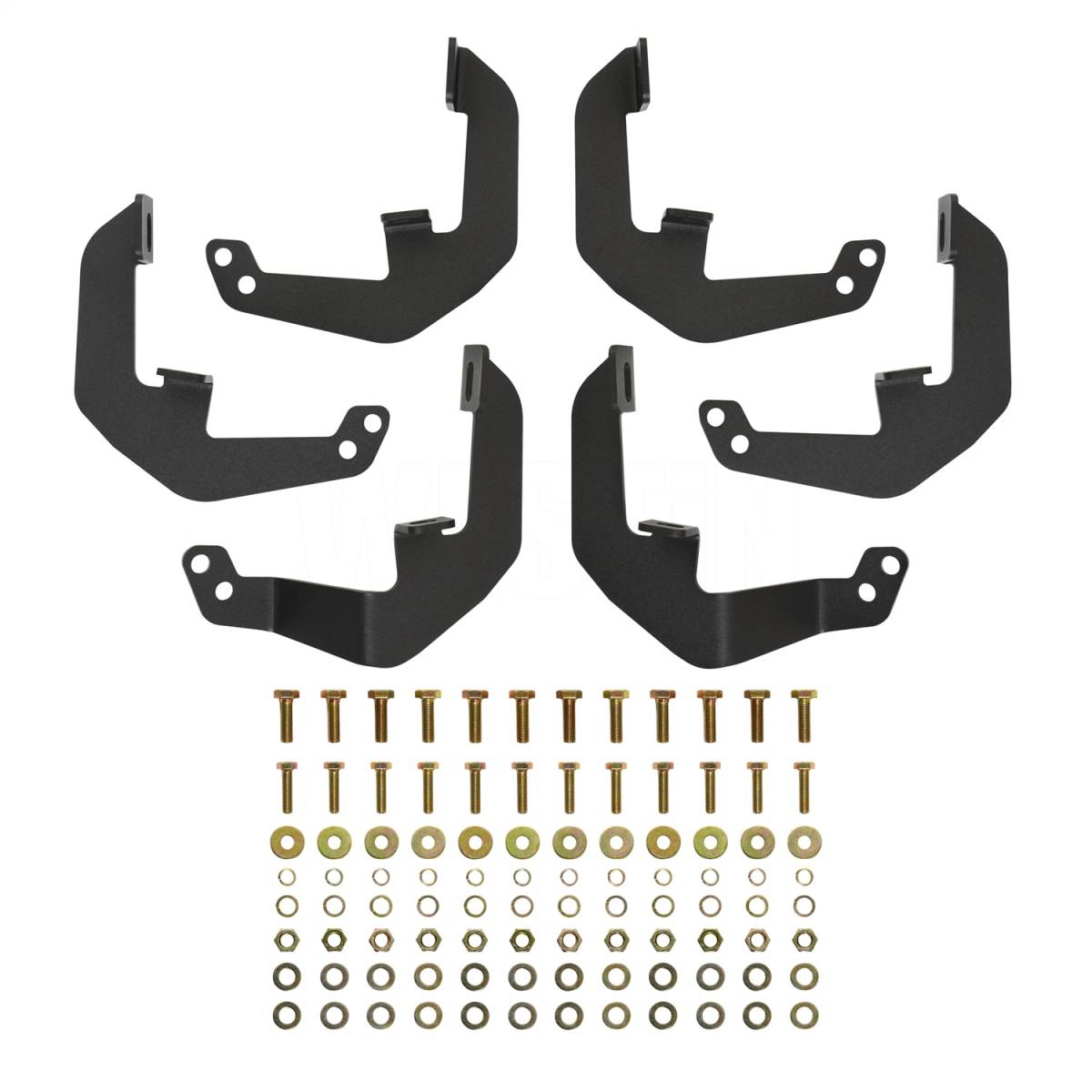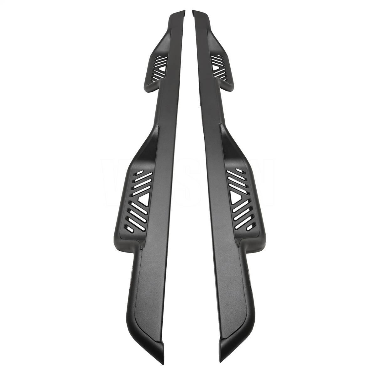 1.5 in. Diameter Mandrel Bent Steel Tube; Distinctive 4 in. Drop Die-Stamped Step Plate Provides Maximum Traction While Cleaning Dirt/Mud/And Debris; Bolt-On Installation - No Drilling Required; Hardware And Mounting Brackets Included; Electrostatic Base Coat Provides Long Lasting Corrosion Protection; Available In Textured Black Powder Coat Finish