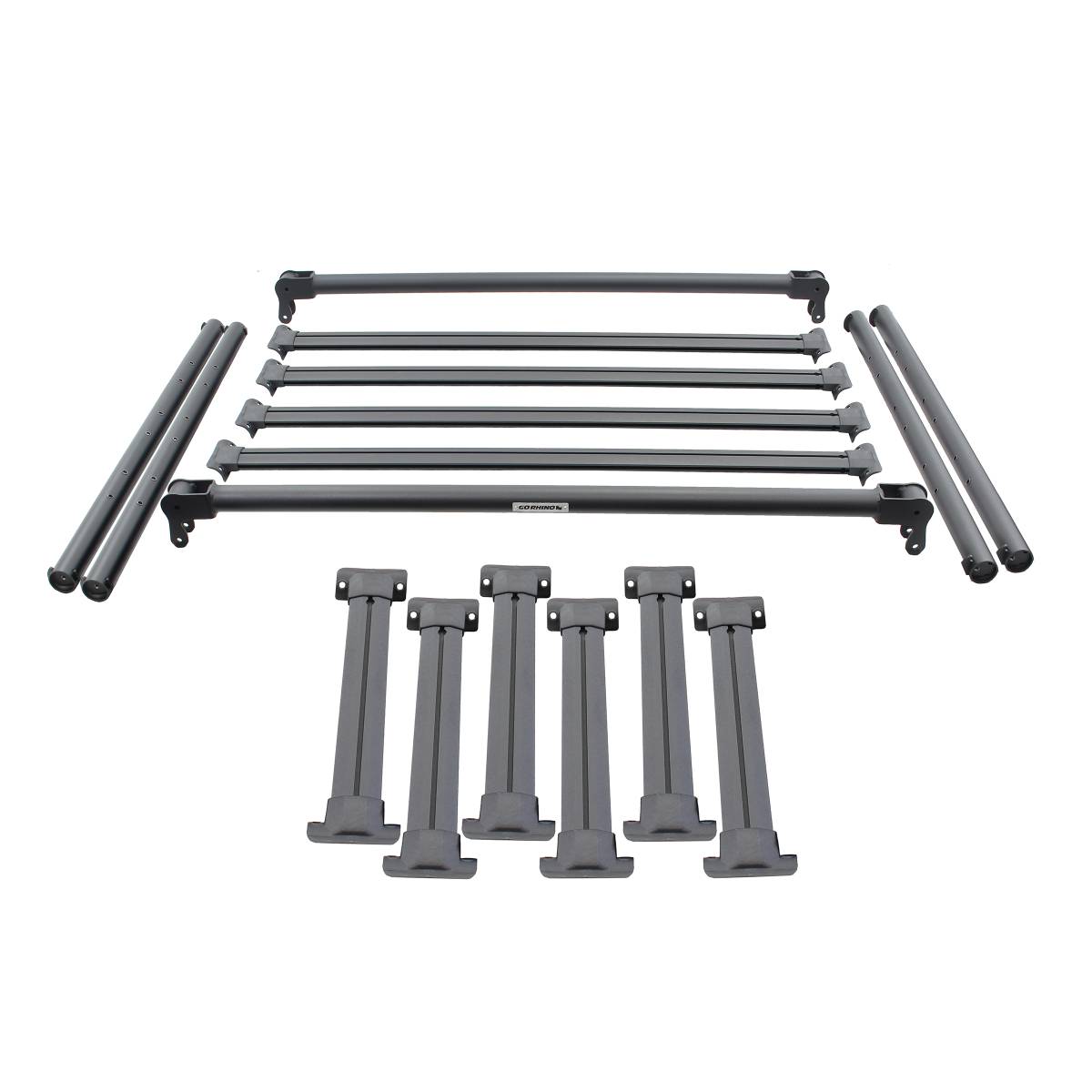 Equipped with Go Rhino's exclusive 4-Core cross bar system that accepts any 1/4" x 20 hardware; Requires 5950000T-02 to install; Optional bolt on Accessory Gear Table folds down and allows for double the gear carrying capacity-Sold Separately; Optional bolt on rear Reel Handles are wide enough to stow tow straps; Limited Lifetime warranty on materials and construction and a 5 year warranty on the Textured Black Finish.; XRS Overlanding Rack System for managing trail gear and accessories