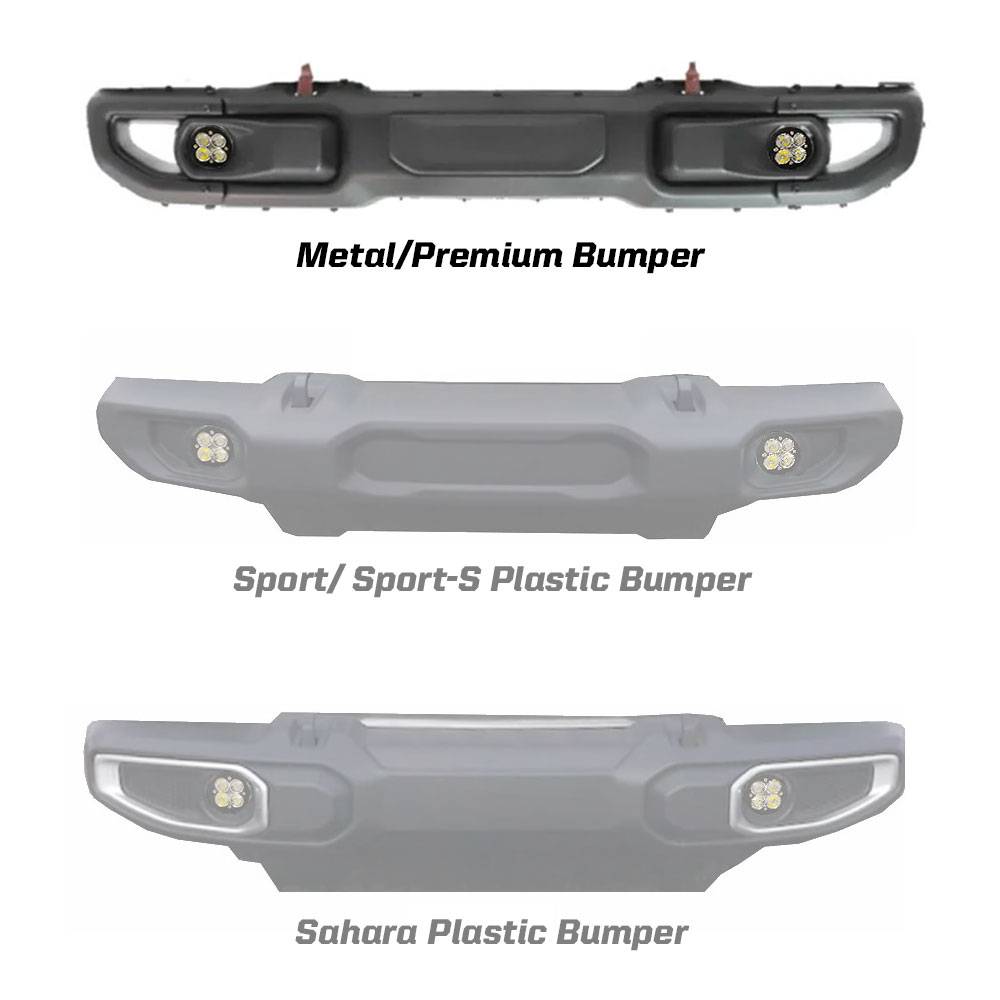 Our JL Rubicon Fog Pocket replacement kit allows enthusiasts to retain factory fit and finish, while taking advantage of premium aftermarket LED output. This kit features a pair of Squadron Pros, which have a combined output of 9,800 lumens.