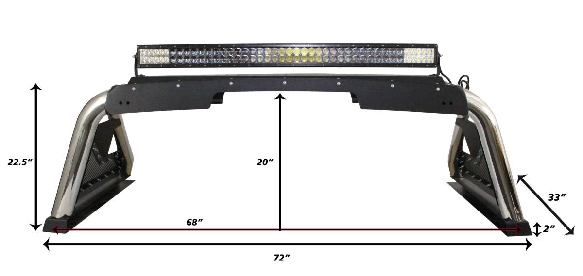 Compatible with most retractable, roll-up and some folding bed covers; Folding bed covers will not be able to fold completely back; Limited Lifetime warranty on materials and construction and a 5 year warranty on the Textured Black Finish.; Includes standard fixed light mount; Light bracket kit available for mounting of smaller lights (sold separately); Lights not included; Provides mounting for up to 6" individual lights and LED light bars up to 40"; Removable side plates; Standard fixed mount version can be upgraded to a Power Actuated version at any time, which retracts lights when not in use
