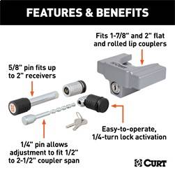 CURT 23086 Hitch Lock Set (2" Receiver, 1/2" to 2-1/2" Latch, Most 1-7/8" & 2" Lip)