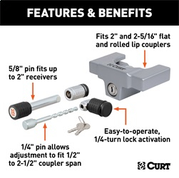 CURT | Hitch/Coupler Lock Set (2" Receiver; 1/2" to 2-1/2" Latch) | 23088