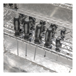UWS crossover truck tool boxes are the tried-and-true way of keeping your tools organized, on-hand and fully secure no matter where you and your truck roam. Each UWS tool box is built from extra-thick aluminum welded into a single-piece tub. This provides the tool box with reliable strength and helps keep the interior sealed off from the elements. Aluminum construction also makes the box highly resistant to corrosion for long-lasting use. This particular box features a slim-line design, providing adequate clearance for truck beds that have extremely limited space between the wheel wells and truck cab. To add even more strength to the crossover truck tool box, the lid features our RigidCore foam-filled design. Layered between two sheets of aluminum, this core greatly increases the structural integrity of the lid to prevent bending and warping and to ensure smooth opening and closing. The lid is able to open to a full 90 degrees, providing better access to tools, equipment and other stored items. It also features self-opening struts to make it easy to open the box when your hands are full. To keep out moisture, dirt and even insects, the lid is also fitted with a MicroSeal gasket that seals off the inside of the tool box from the outside elements. UWS crossover truck tool boxes make it easy to keep your tools and other items organized, featuring built-in screwdriver holders and a three-compartment sliding tool tray. The tool box itself is easy to install and is available in multiple sizes to provide the perfect for your truck and lifestyle. Like all UWS products, each crossover truck tool box is proudly assembled right here in the USA for style and long-lasting dependability.
