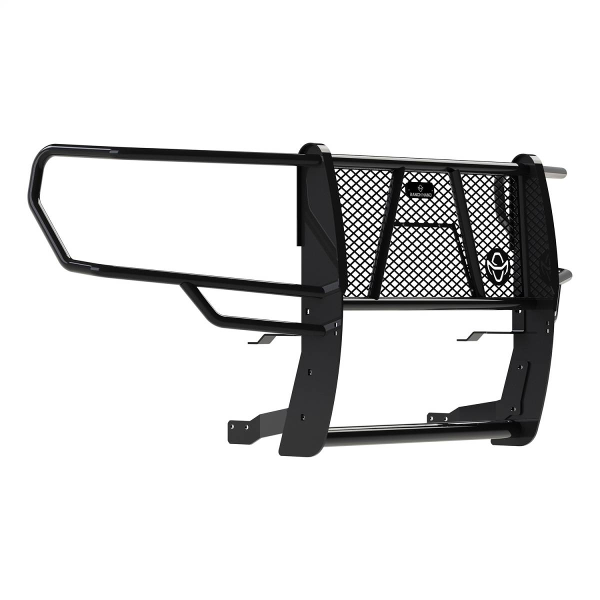 The Ranch Hand Legend Grille Guard is the icon of the vehicle protection aftermarket industry. The quality and the style of the Ranch Hand Legend Grille Guard is unmatched. You need the peace of mind that when you are out on the road, you have done everything you can to protect your vehicle and your family. Providing outstanding protection, the Legend Grille Guard has a one piece fully welded construction and is frame mounted in four locations for maximum strength and to eliminate vibration.The grille guard is constructed from 12 gauge tubing and has 5/16in. upright thickness and features punched grille inserts specifically designed to match the make and model of the vehicle – no expanded metal used. All Ranch Hand products are finished with a durable black powder coat paint. Most applications allow you to maintain factory tow hooks.