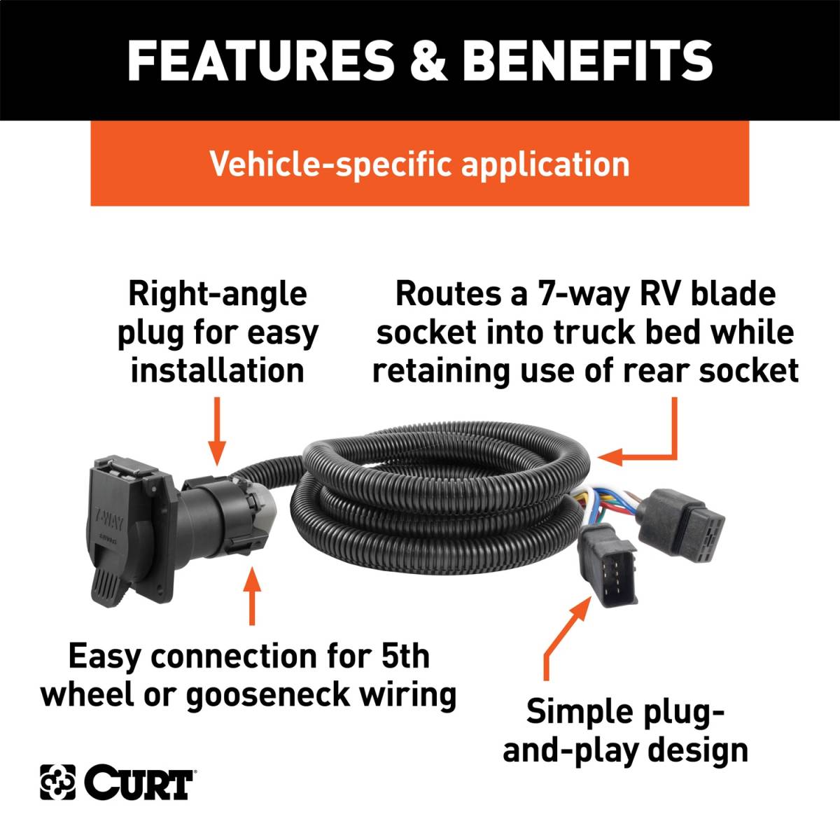 7' Custom Wiring Extension Harness (Adds 7-Way RV Blade to Truck Bed)