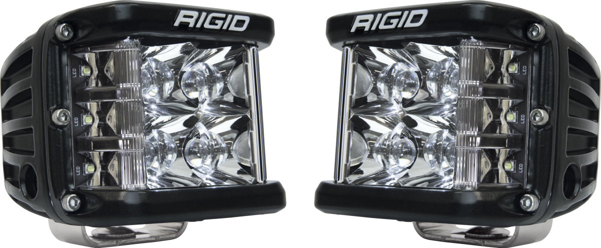 One of RIGIDs most versatile, compact lighting solutions just got better with the RIGID D-SS PRO, Dually-Side Shooter LED pod light. Perfect for any application that requires a wide spread beam, including A-Pillars, fog lights, and motorcycle applications. The D-SS PRO incorporates powerful optics and recently improved LED technology for greater output with the added benefit of additional LEDs aimed to the side for a much broader beam. The D-SS PRO packs a powerful punch with up to 102 percent more raw lumens. The D-SS PRO feature 120-degrees of horizontal lighting coverage. The main forward-facing LEDs are available with RIGIDs advanced Spot, Flood, or Driving optics, so there is a D-SS PRO lighting solution for nearly any application. The D-SS PRO LED lights are available in pairs with three side-shooting LEDs on one side of each light, or in single applications with a pair of side-shooting LEDs on both sides of the light. Only RIGID provides a broad, powerful lighting solution in such a compact package. Own The Night with RIGIDs original side shooter LED light.