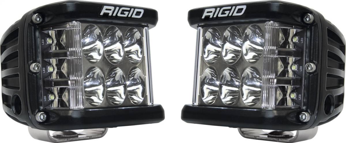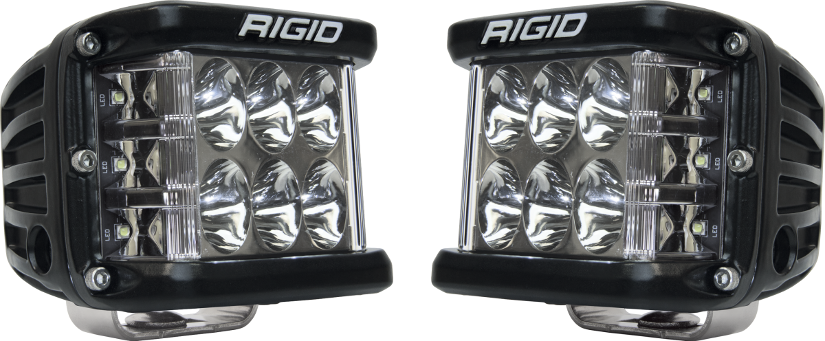 One of RIGIDs most versatile, compact lighting solutions just got better with the RIGID D-SS PRO, Dually-Side Shooter LED pod light. Perfect for any application that requires a wide spread beam, including A-Pillars, fog lights, and motorcycle applications. The D-SS PRO incorporates powerful optics and recently improved LED technology for greater output with the added benefit of additional LEDs aimed to the side for a much broader beam. The D-SS PRO packs a powerful punch with up to 102 percent more raw lumens. The D-SS PRO feature 120-degrees of horizontal lighting coverage. The main forward-facing LEDs are available with RIGIDs advanced Spot, Flood, or Driving optics, so there is a D-SS PRO lighting solution for nearly any application. The D-SS PRO LED lights are available in pairs with three side-shooting LEDs on one side of each light, or in single applications with a pair of side-shooting LEDs on both sides of the light. Only RIGID provides a broad, powerful lighting solution in such a compact package. Own The Night with RIGIDs original side shooter LED light.
