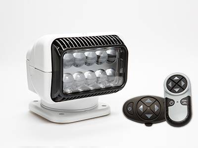Permanent LED Spotlight with Wireless Hand Held & Wireless Dash Mount Remote.12V, 3.5 AMP, 40W. Package includes Light, Gasket, Caps, Screws, Wireless Hand Dash Remote, Wireless Dash Remote